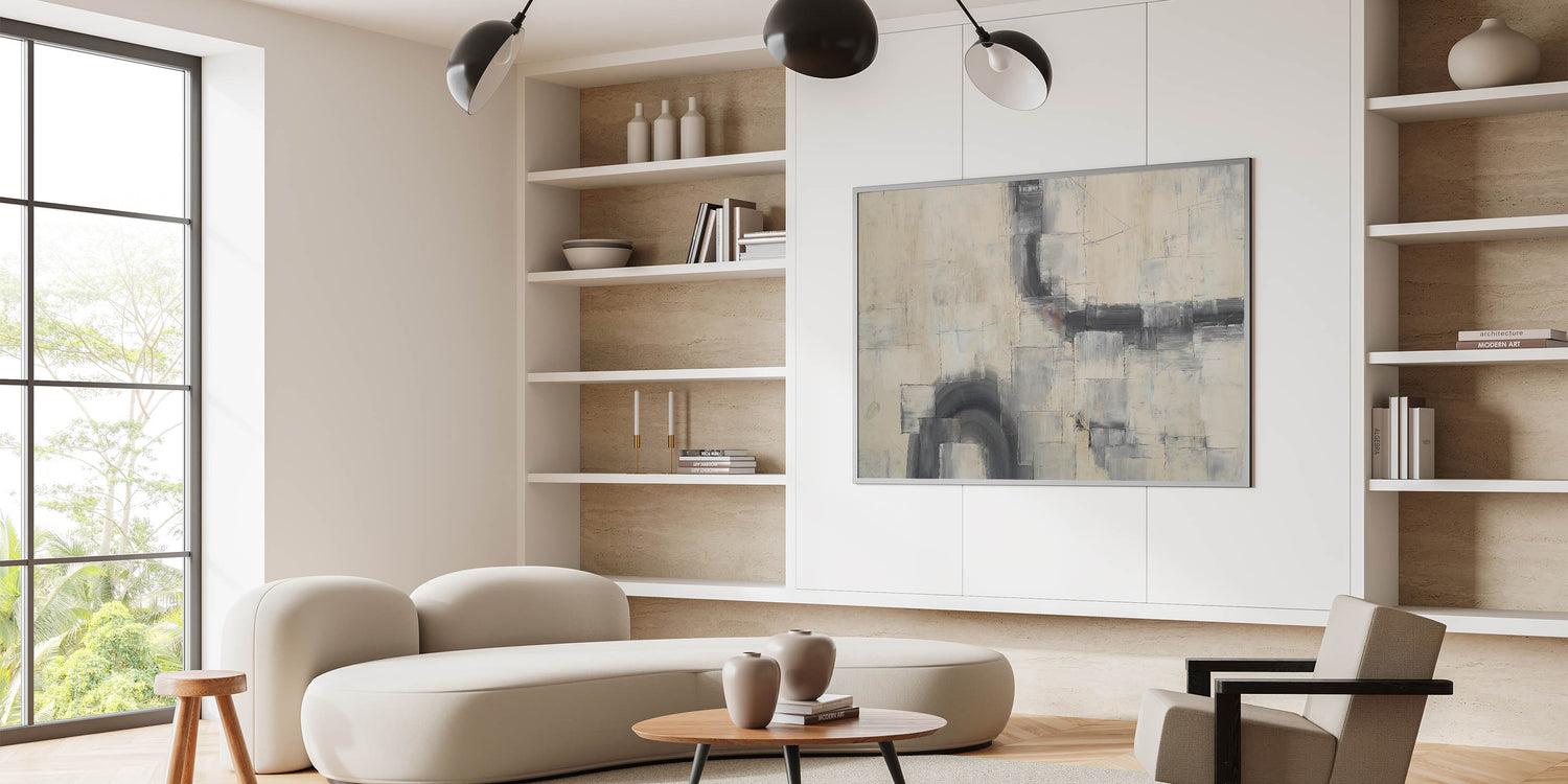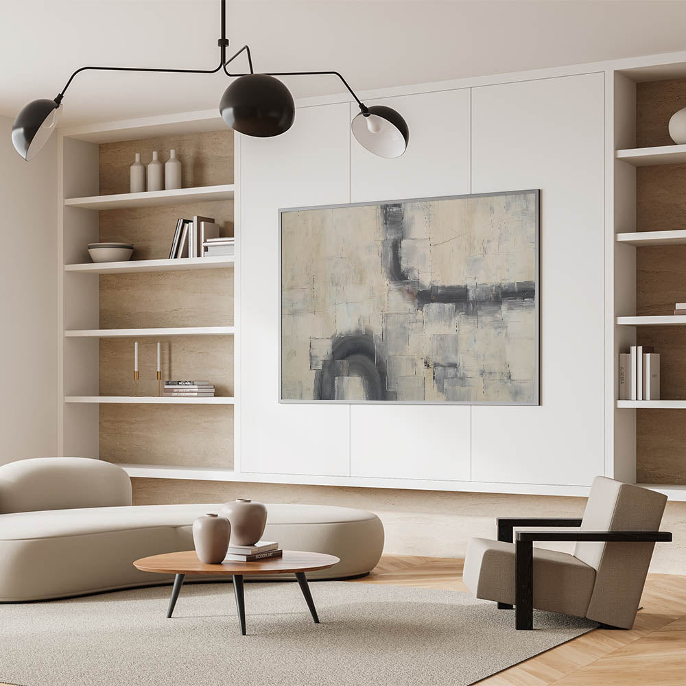 This large abstract wall art is designed for those who appreciate clean lines and sophisticated simplicity. Whether displayed as a focal point or part of a larger collection, this modern abstract painting enhances any setting with its timeless elegance. Elevate your space with this contemporary, structured masterpiece.