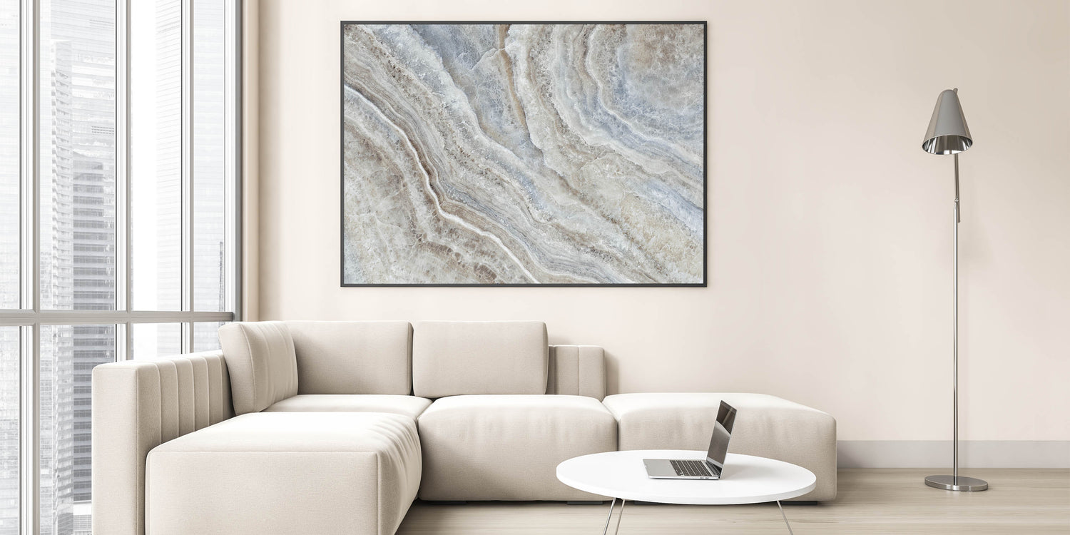 • Marble-inspired abstract design with flowing neutral textures and layered movement