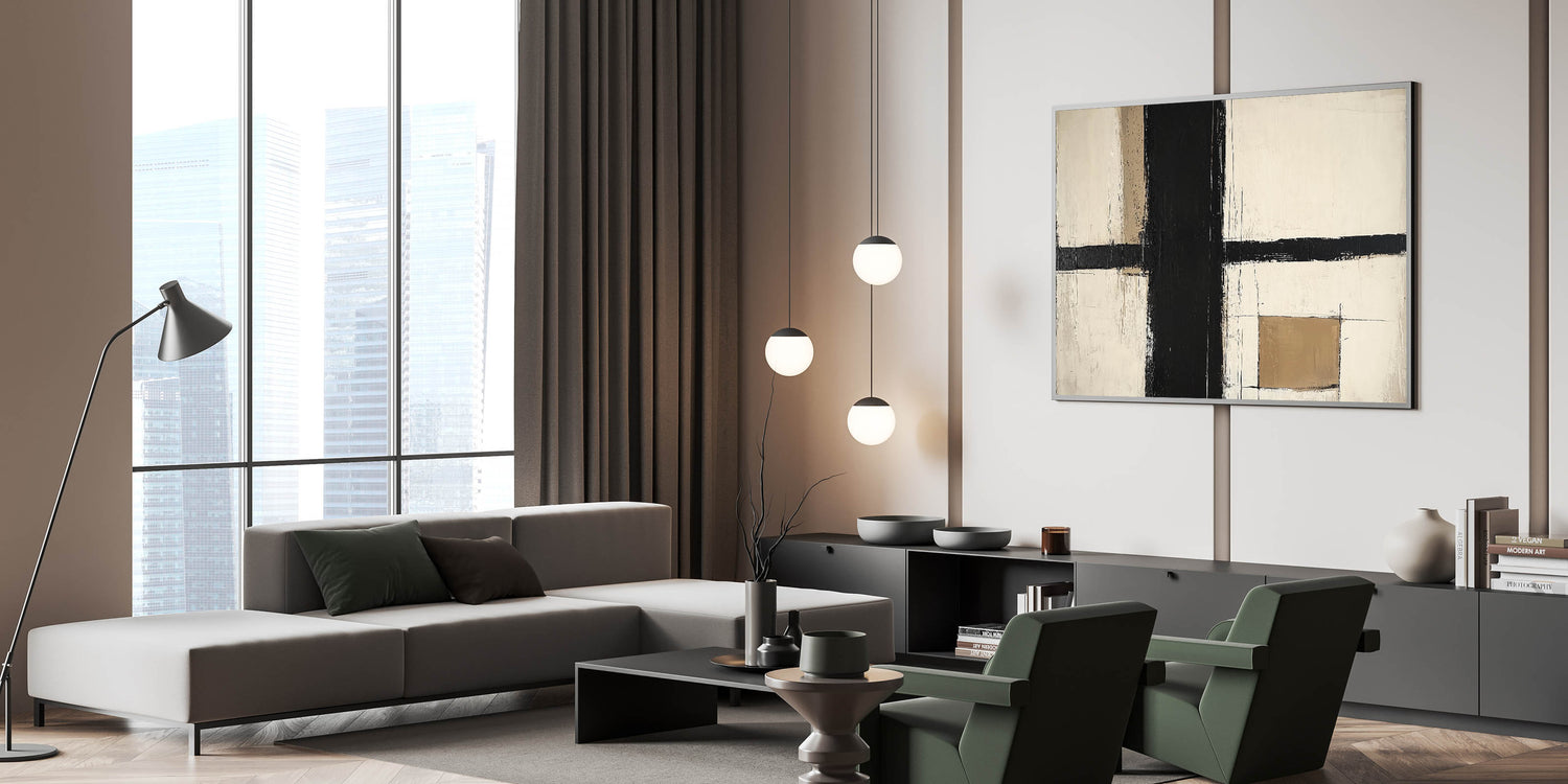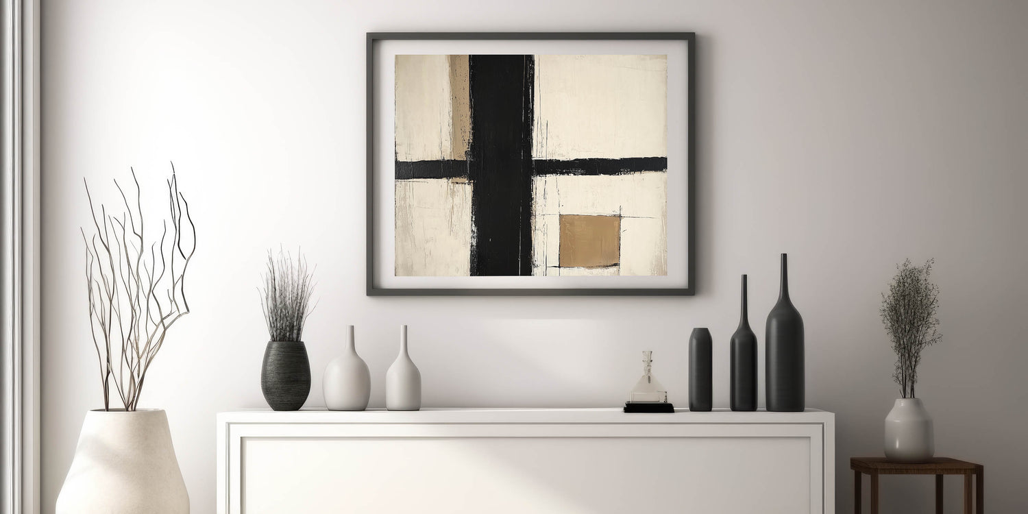 Modern Abstract Living Room Wall Art – Black & Beige Canvas