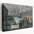 Capture the raw beauty of urban industrial life with this striking modern wall art. Depicting a bustling dockyard in the heart of winter, the artwork features workers, horses, and ships set against the backdrop of a foggy, snow-covered cityscape. The muted tones and intricate details evoke a sense of resilience and energy, making this piece an ideal choice for contemporary art enthusiasts.