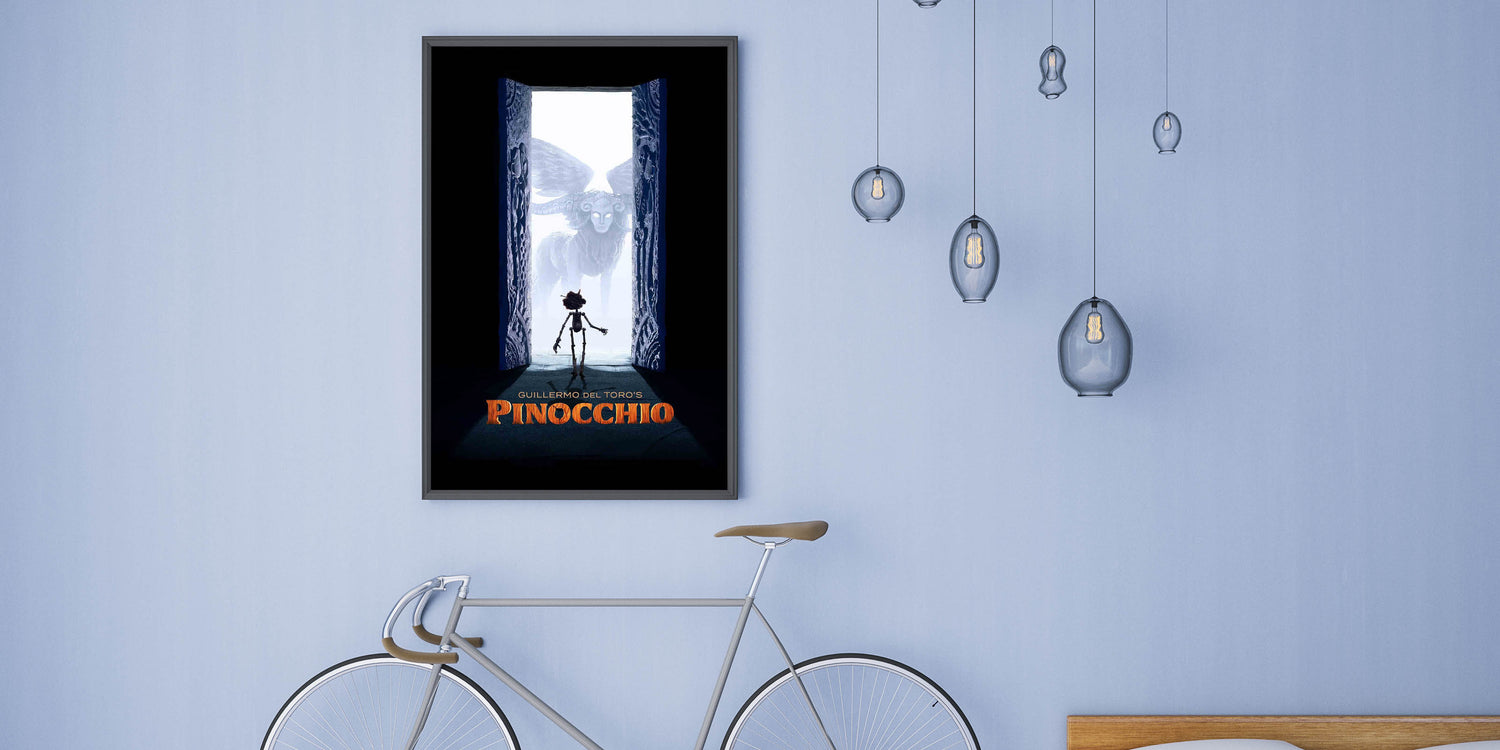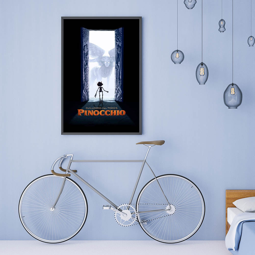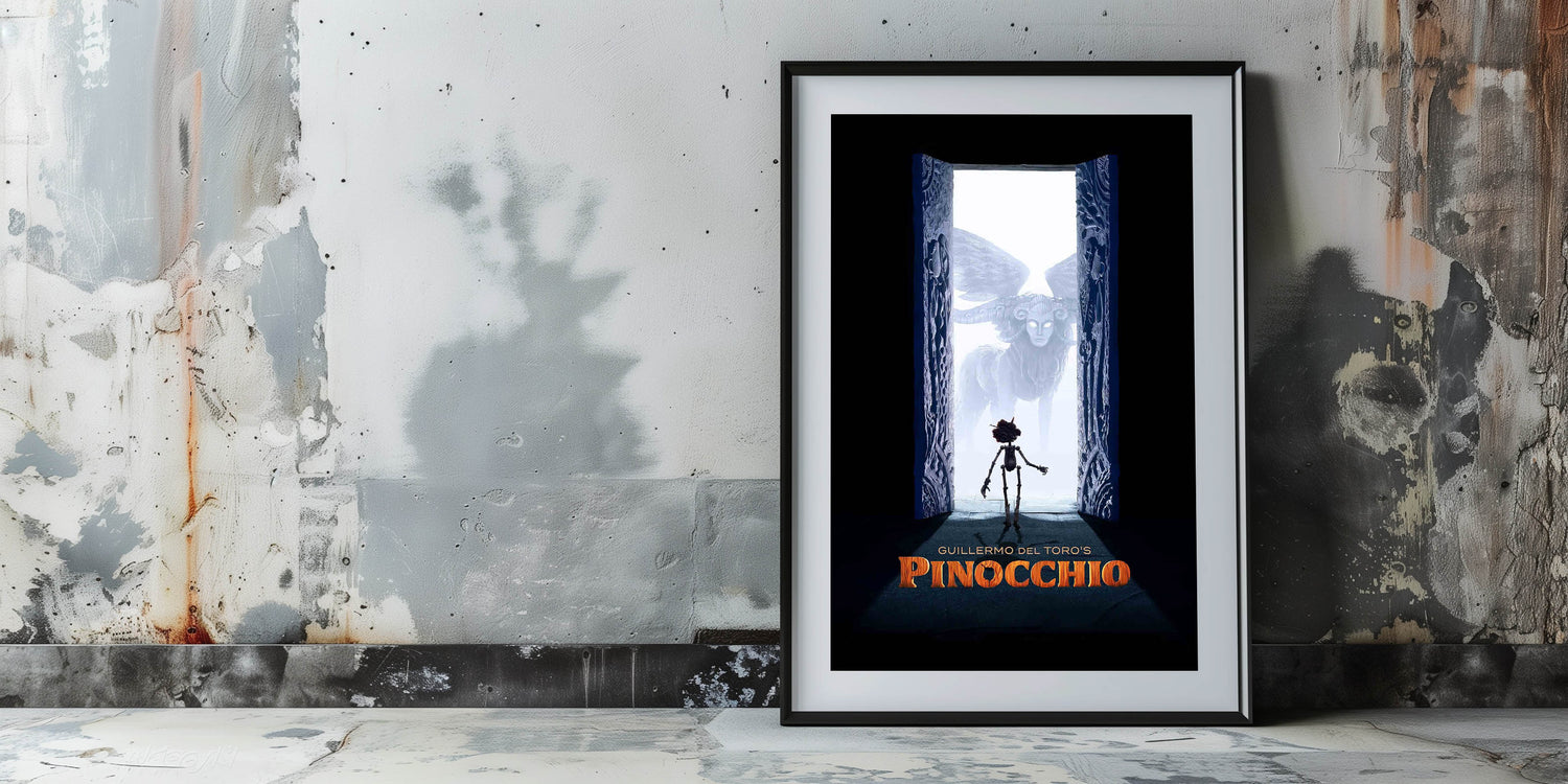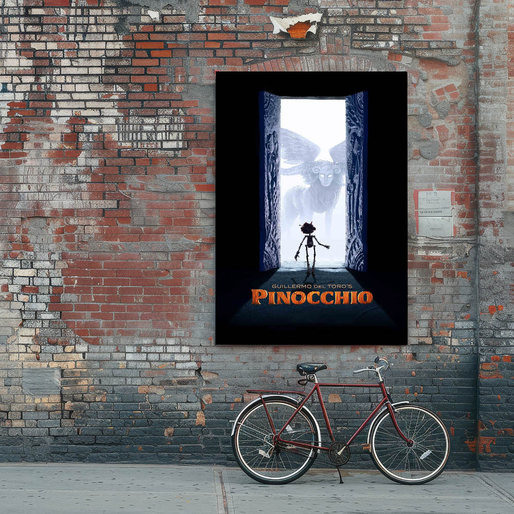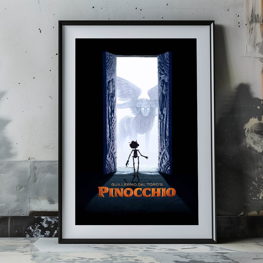 Experience the dark and enchanting storytelling of Guillermo del Toro’s Pinocchio with this 2020s vintage movie poster. This retro film art print captures the haunting beauty and intricate craftsmanship of the stop-motion animated masterpiece, making it a must-have for collectible movie prints enthusiasts. The striking contrast of shadow and light, along with its mysterious and dreamlike composition, makes this limited edition cinema art a captivating addition to any film lover’s collection.
