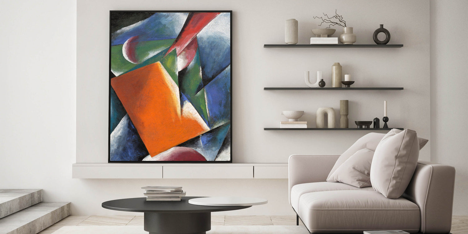 Add a bold, artistic flair to your walls with this stunning geometric artwork. Featuring a vibrant combination of orange, blue, and green tones, this piece embodies the dynamic essence of Modern Wall Art and Contemporary Art. Its angular shapes and vibrant hues make it an eye-catching addition to any space.