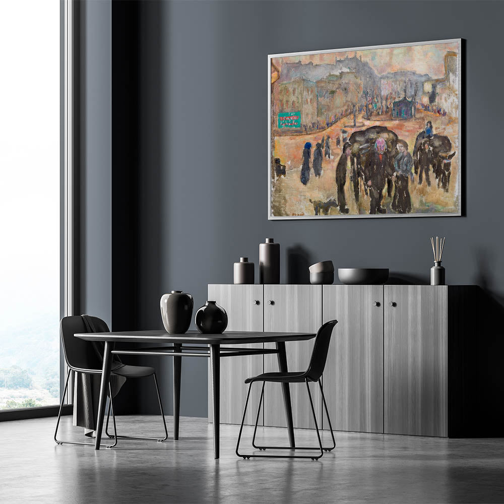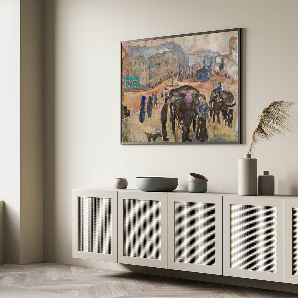Bring timeless charm and nuanced emotion to your walls with this modern wall art, inspired by Pierre Bonnard’s The Ragpickers (1909). This expressive painting captures a bustling urban scene filled with dynamic figures and subtle interactions, depicted through muted earth tones and soft pastels. The hazy backdrop and flowing brushstrokes create a nostalgic ambiance, perfect for lovers of contemporary art pieces with a historical and artistic edge.