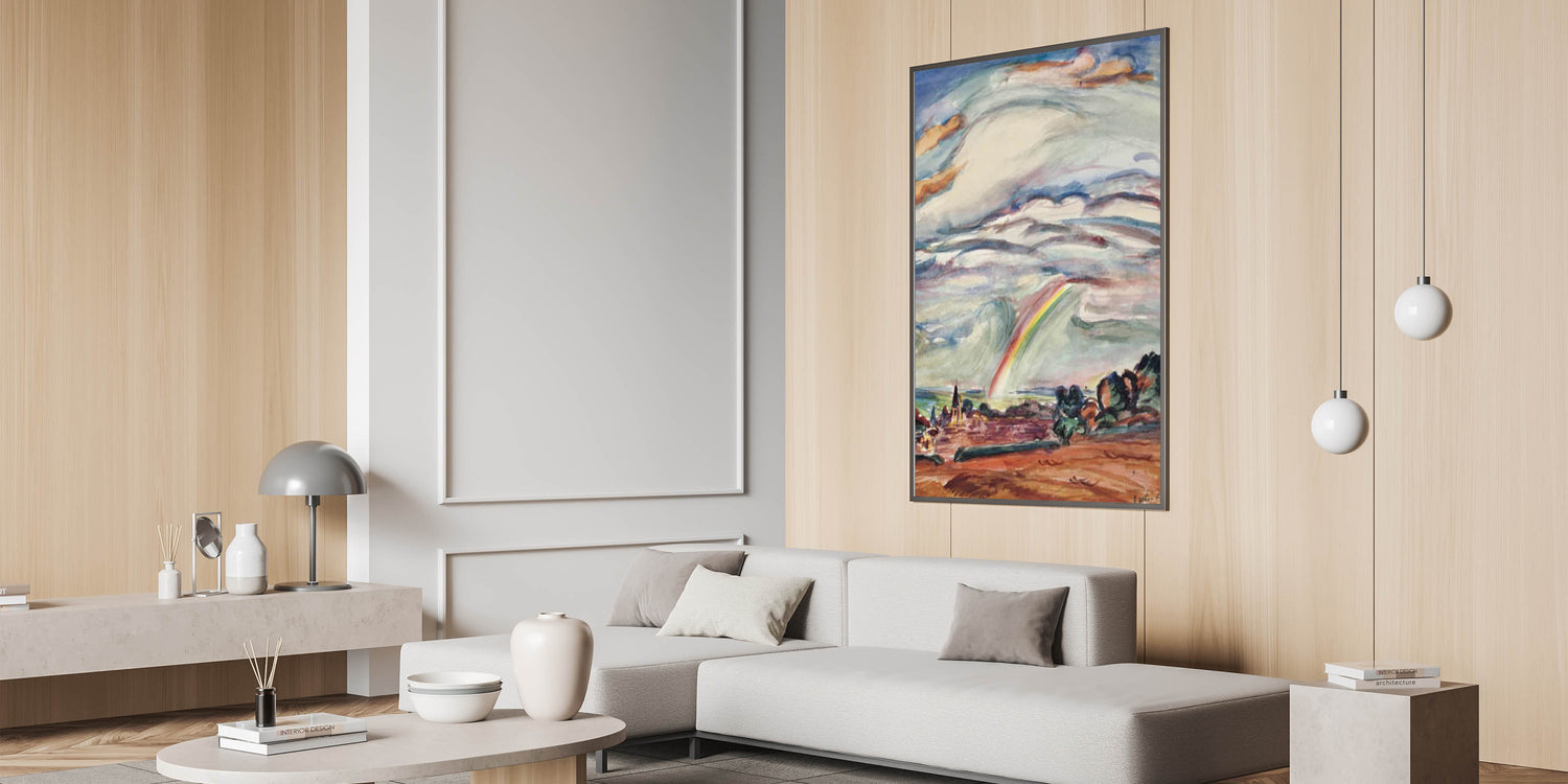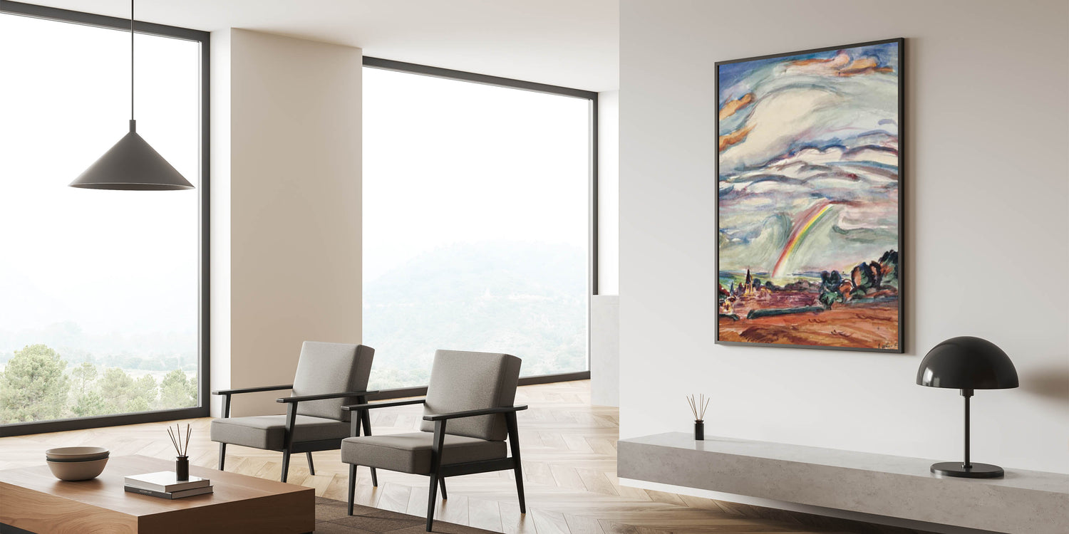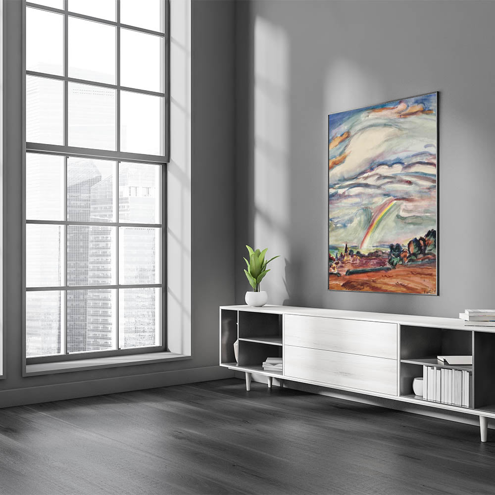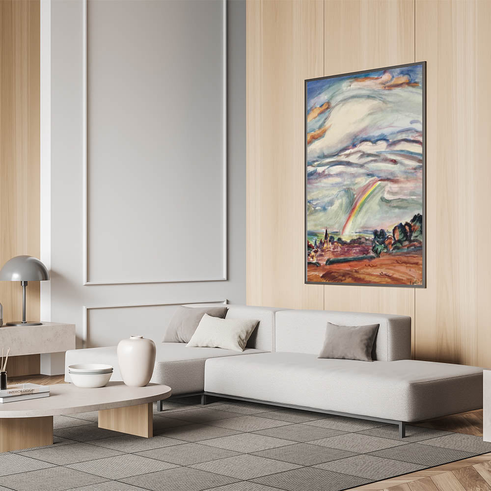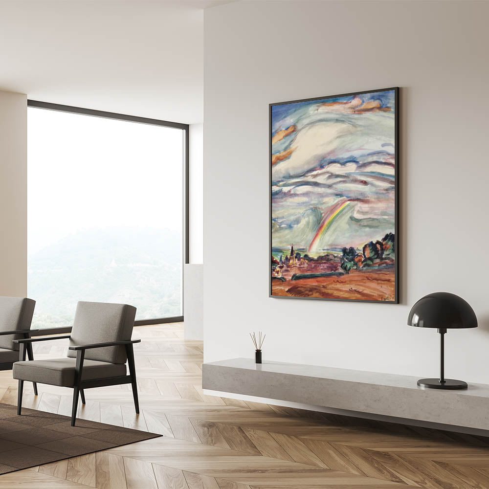 Add a sense of wonder and natural beauty to your space with the "The Rainbow" Modern Wall Art. Inspired by Othon Friesz's dynamic depiction of Montiullier, this artwork captures a vivid rainbow stretching across a lush, rolling landscape. With its rich watercolor textures and dramatic skies, this piece is perfect for modern design-focused interiors that celebrate the beauty of nature.