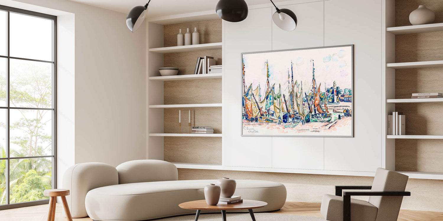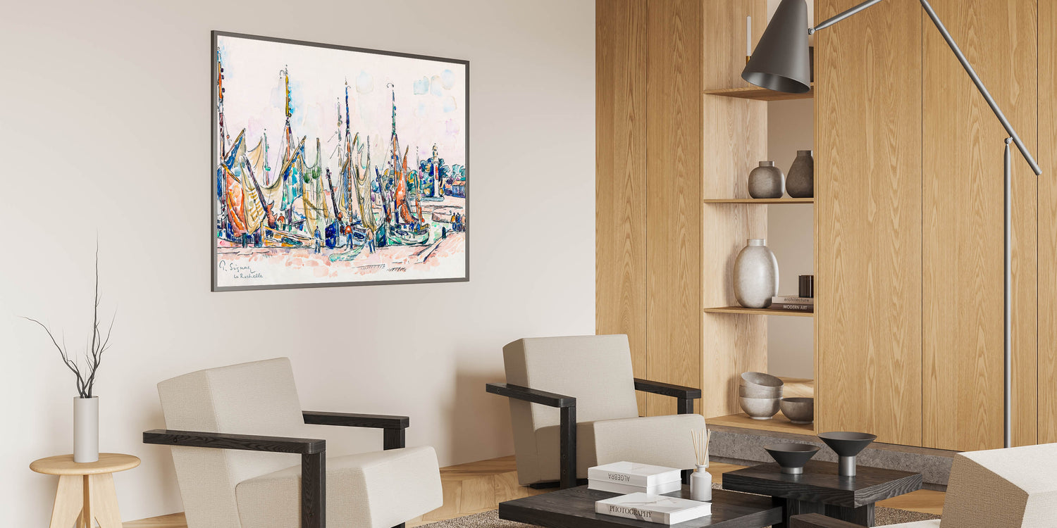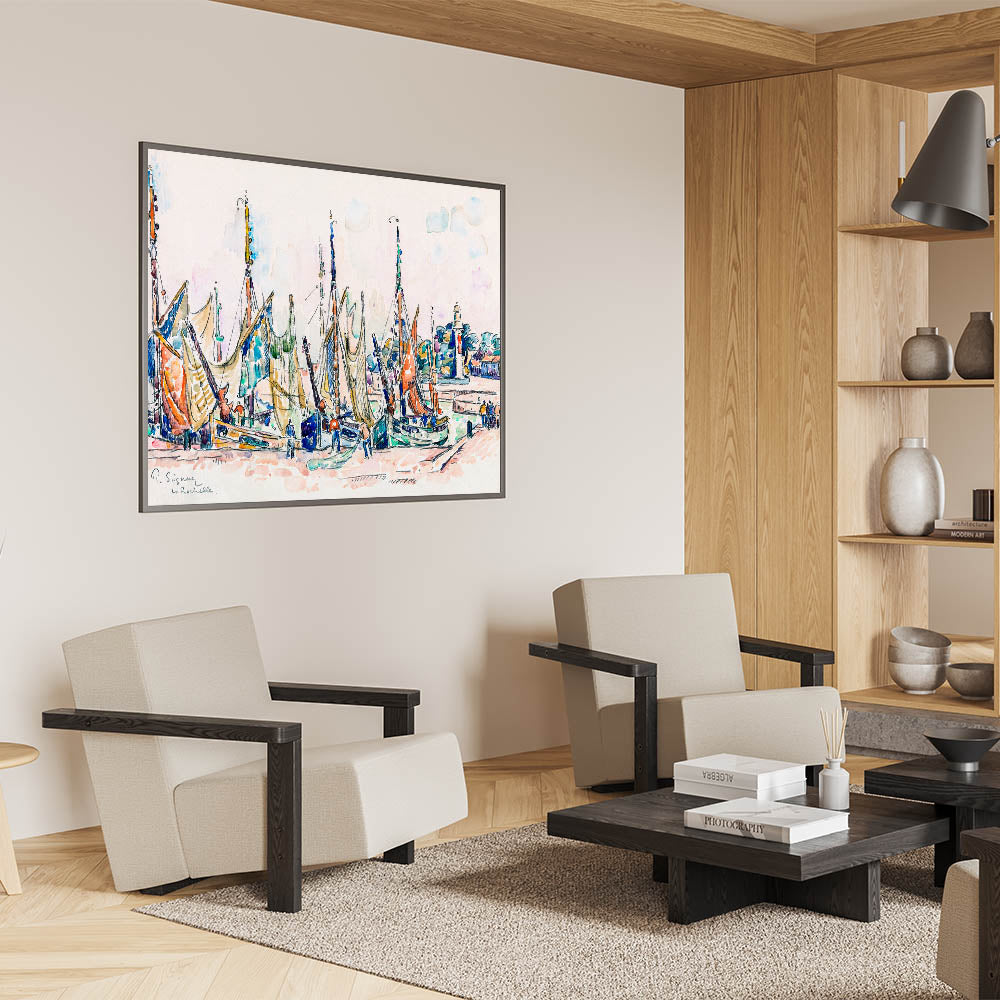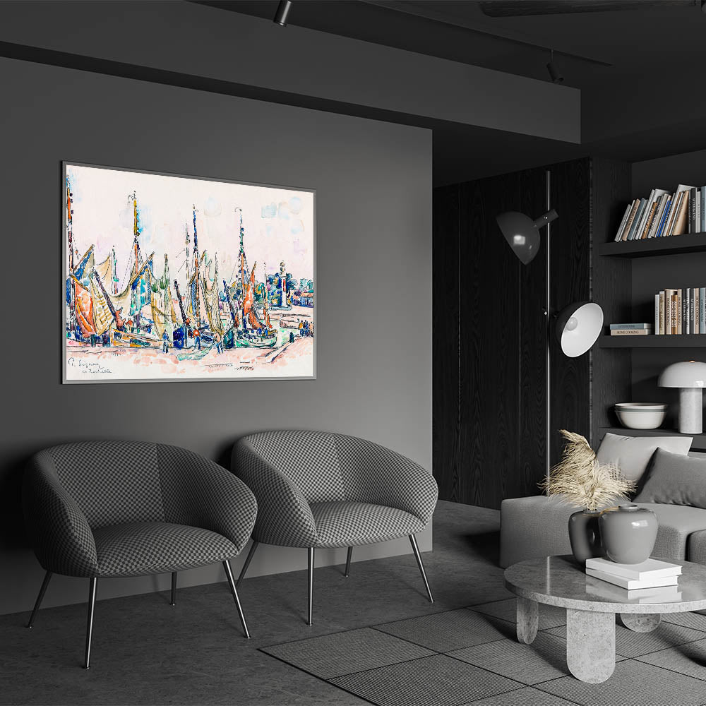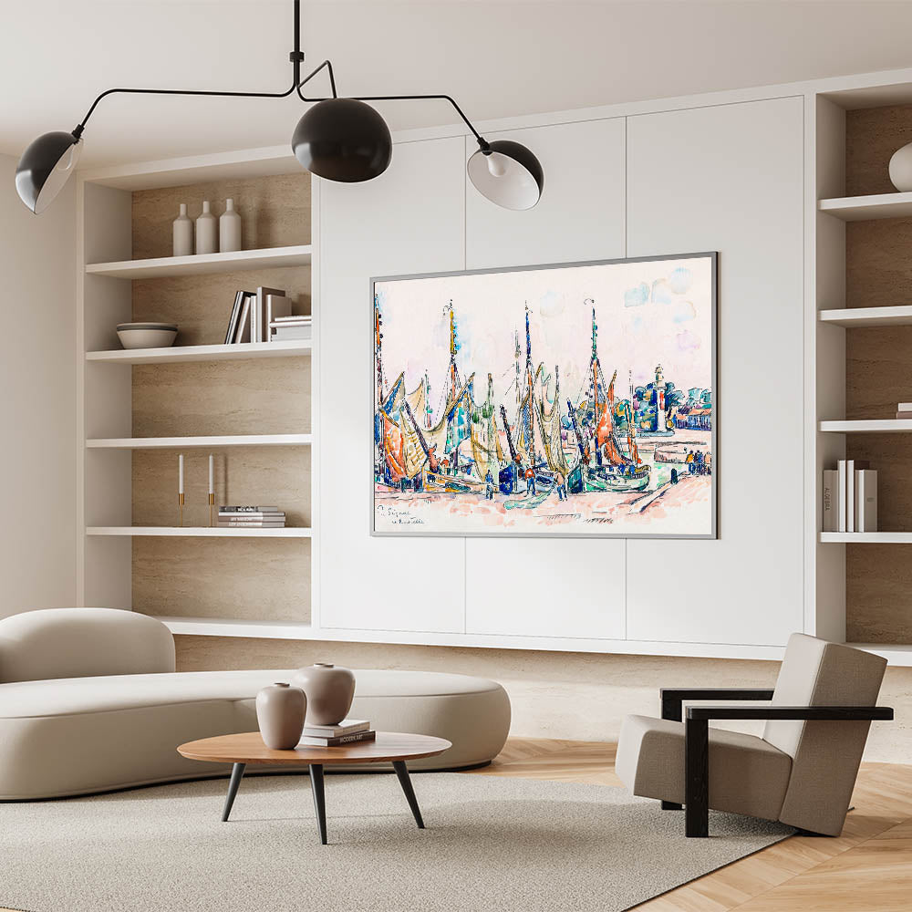 Enhance your space with the lively charm of this Modern Wall Art piece, inspired by Paul Signac’s La Rochelle (ca. 1911). This captivating artwork showcases vibrant sailboats, intricate detailing, and a rich blend of pastel and bold colors. Perfect for brightening up contemporary or nautical-themed interiors, this piece embodies the energy and beauty of coastal life.