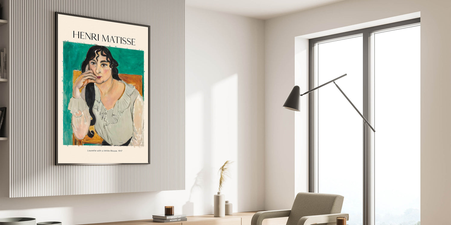 Henri Matisse’s Laurette with a White Blouse, 1917 offers a serene portrayal of elegance and simplicity, showcasing Matisse’s mastery of portraiture during the Fauvism movement. This expressive piece highlights his use of vibrant yet soothing colors, with the green background and soft tones of the figure’s white blouse creating a harmonious composition. The artwork captures Matisse's distinctive art style, blending Modernism with expressive shapes and subtle textures. Ideal for fans of modern art, this artwork exemplifies Matisse’s innovative approach to color and form as one of France’s most renowned painters.