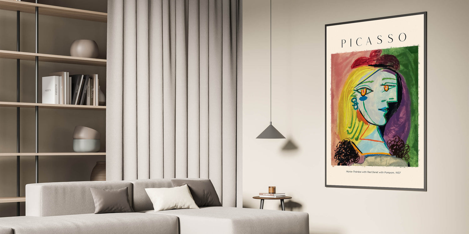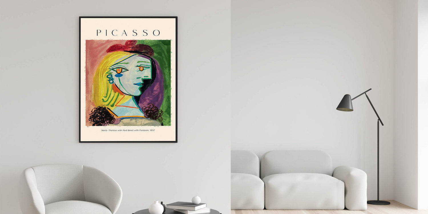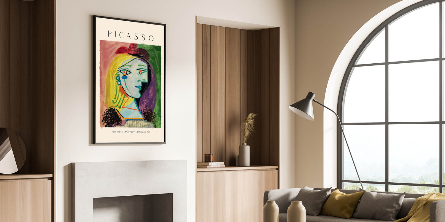 Add a splash of vibrant color and modernist expression to your space with Picasso's "Marie-Thérèse with Red Beret." Painted in 1937, this iconic portrait captures the essence of Picasso's muse, Marie-Thérèse Walter, blending Cubist abstraction with a striking color palette. The dynamic composition and fluid brushwork showcase Picasso’s genius, creating a timeless piece that speaks to the heart of modern art.