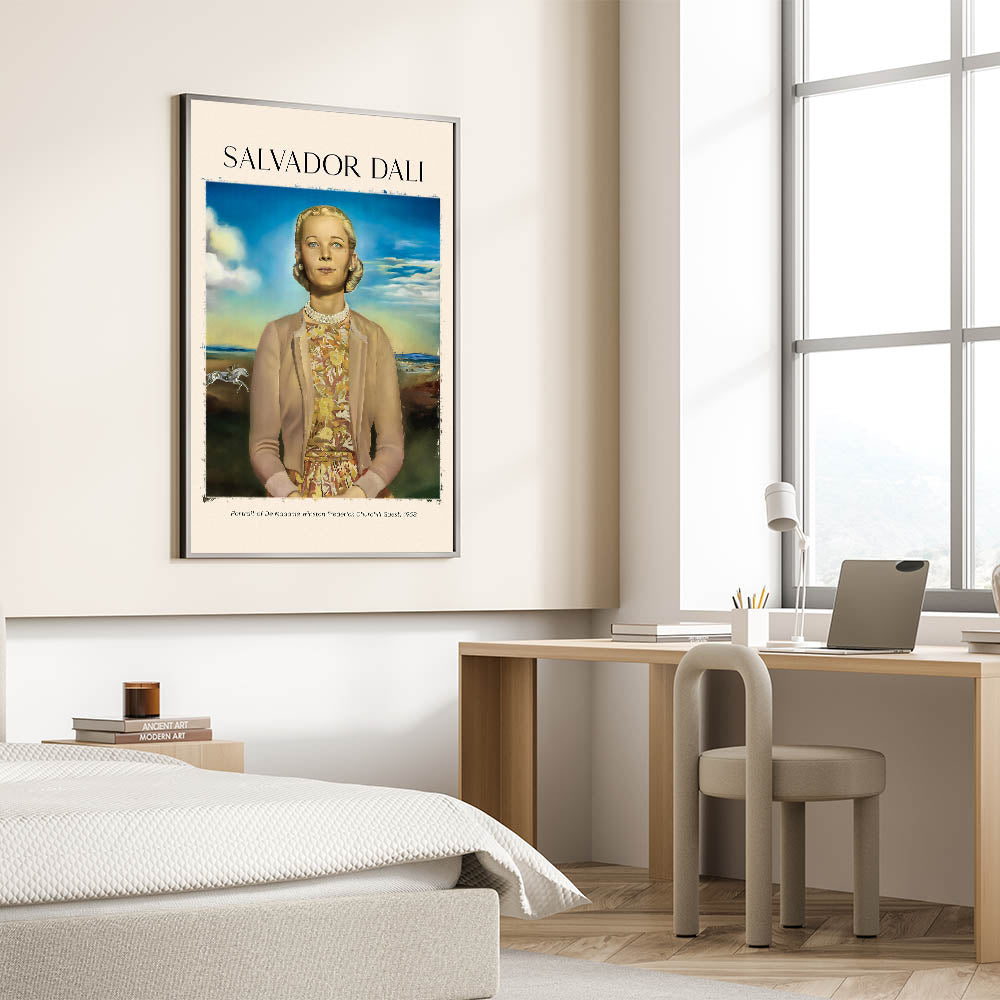 Bring the elegance and surrealist style of Salvador Dali into your home with this remarkable piece, "Portrait of De Madame Winston Frederick Churchill Guest, 1958." This portrait blends classical realism with Dali’s signature surrealist touch, making it a fascinating study of human emotion and symbolic storytelling. Perfect for lovers of both portraiture and surrealism, this artwork adds sophistication and depth to any space.