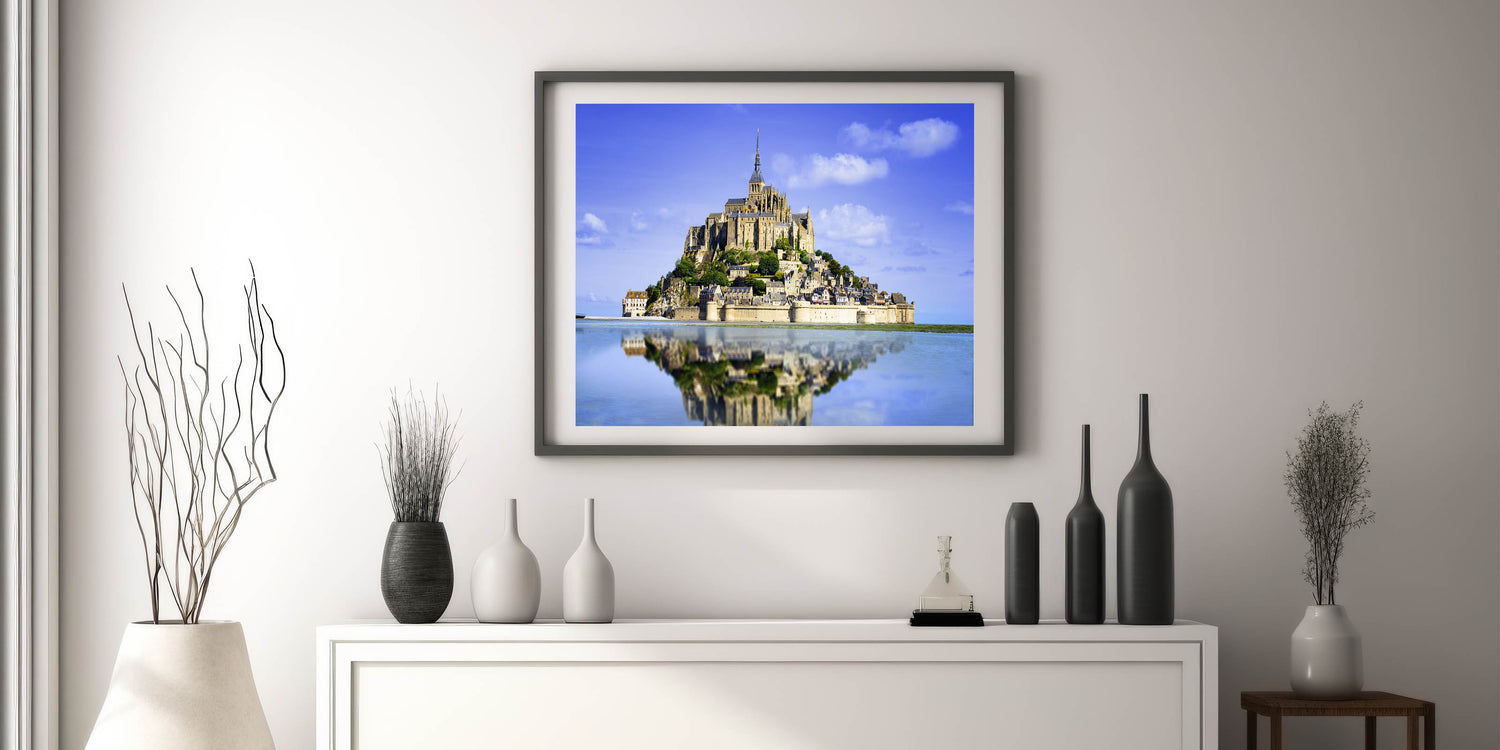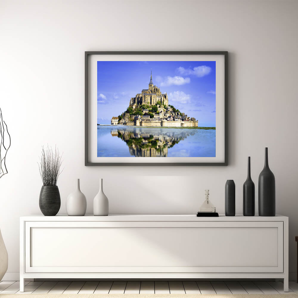 This versatile Mont St. Michel print is perfect for anyone who appreciates the beauty of French landscapes and architecture. Whether for your living room, bedroom, or office, this piece will create a serene, sophisticated atmosphere in your home.