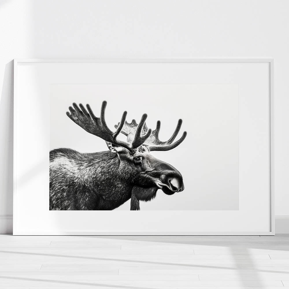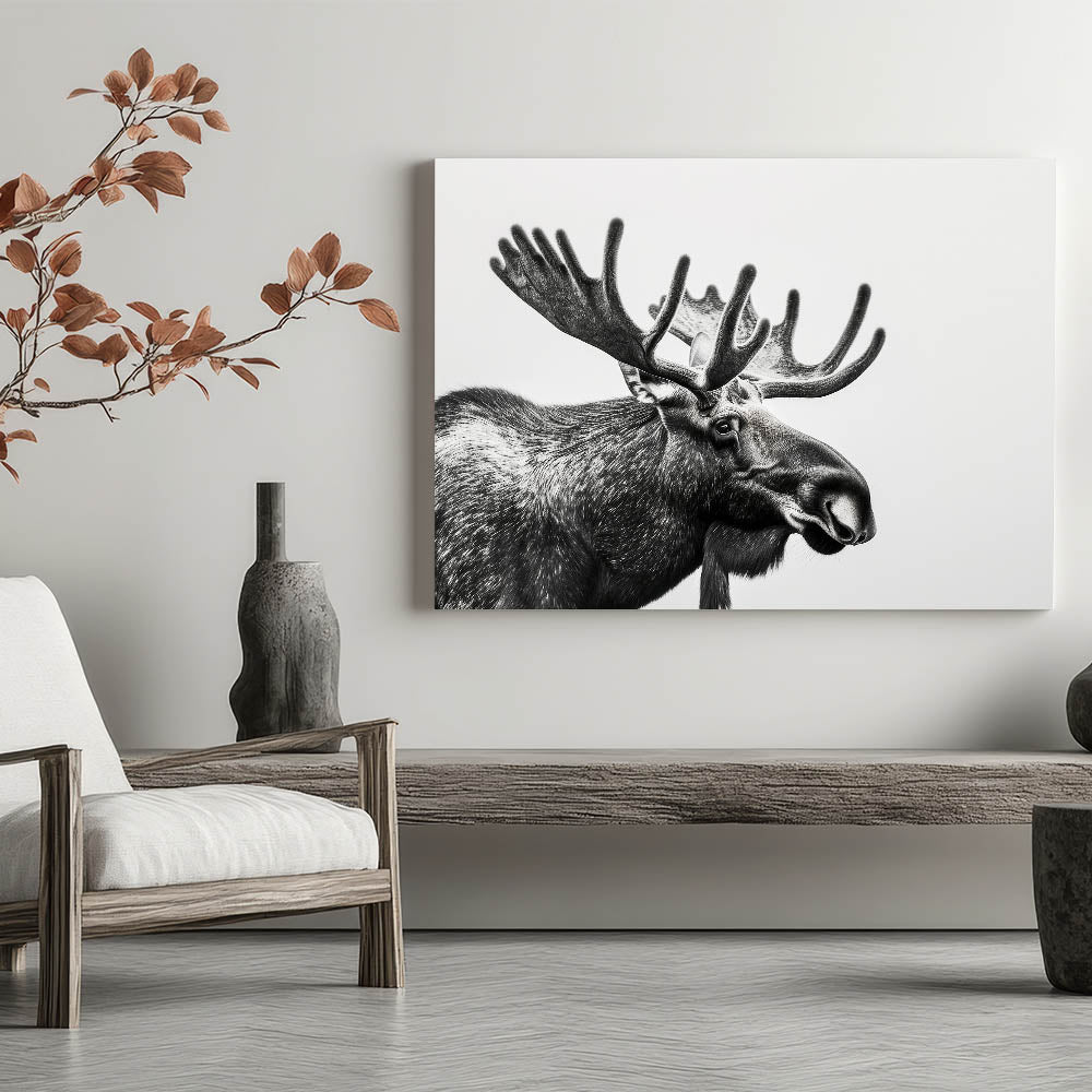 Black & White Moose Portrait - Elegant Wildlife Canvas & Art Prints