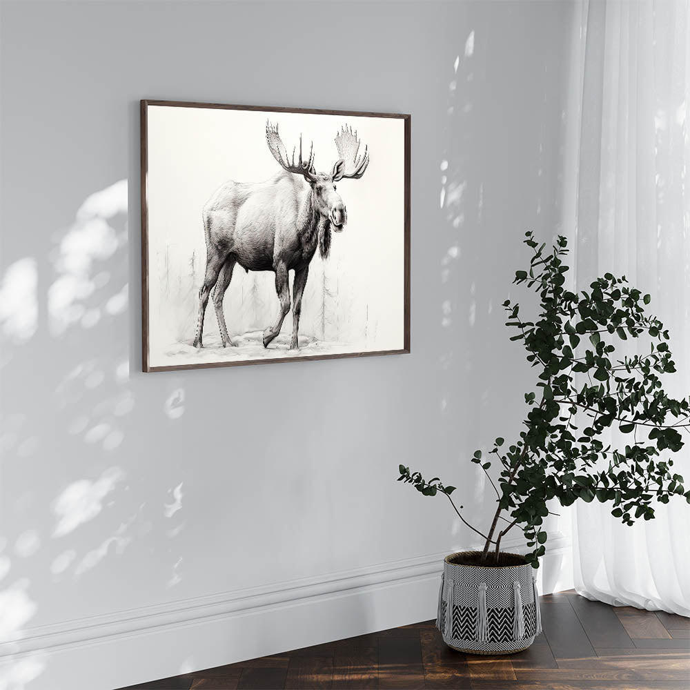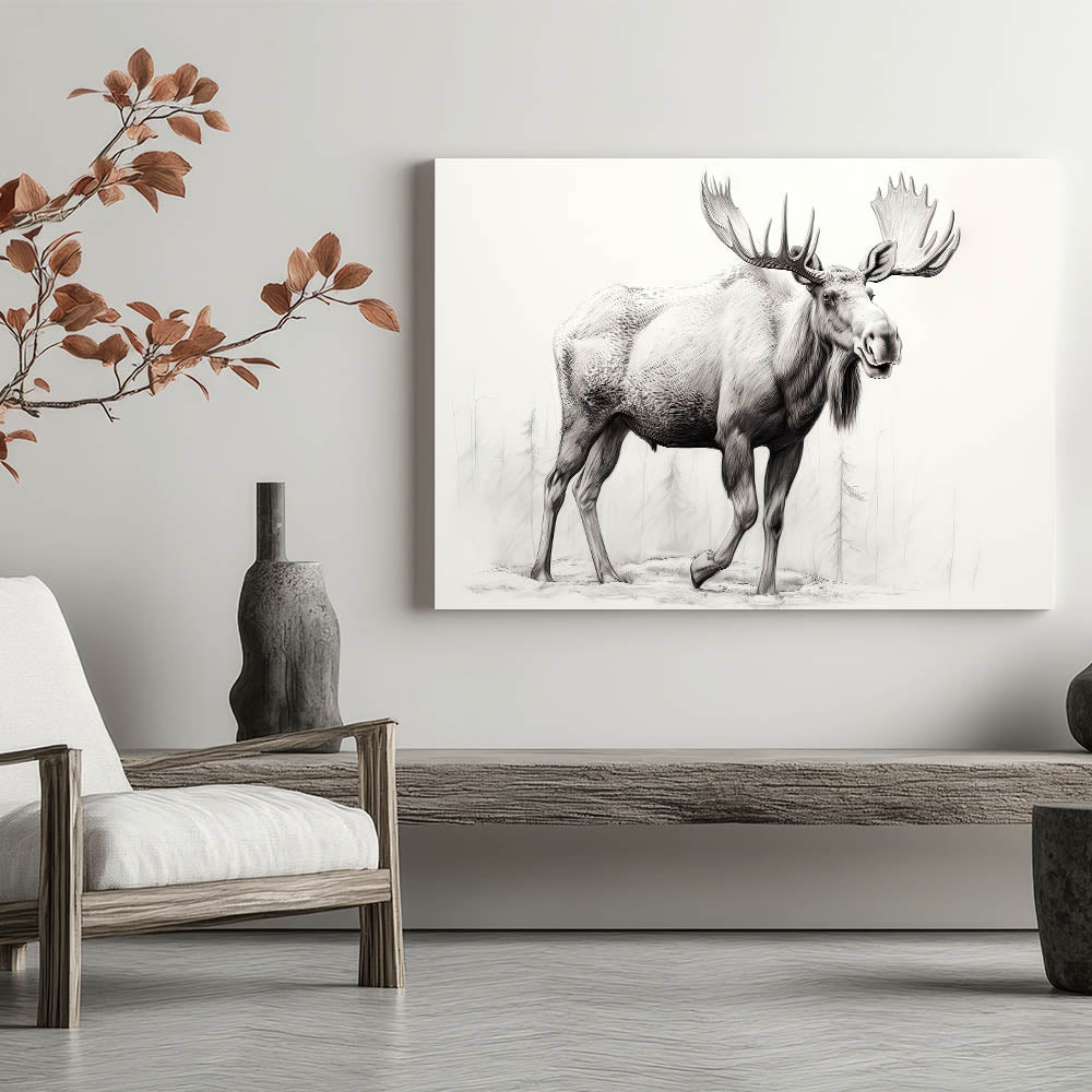 Elegant Moose Sketch Art - Black & White Wildlife Canvas & Prints