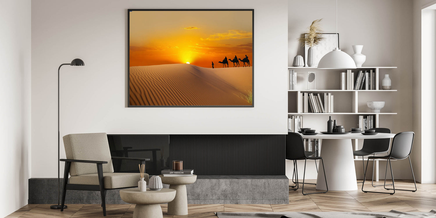 Sahara Desert Wall Art - Moroccan Landscape Art Camel Caravan