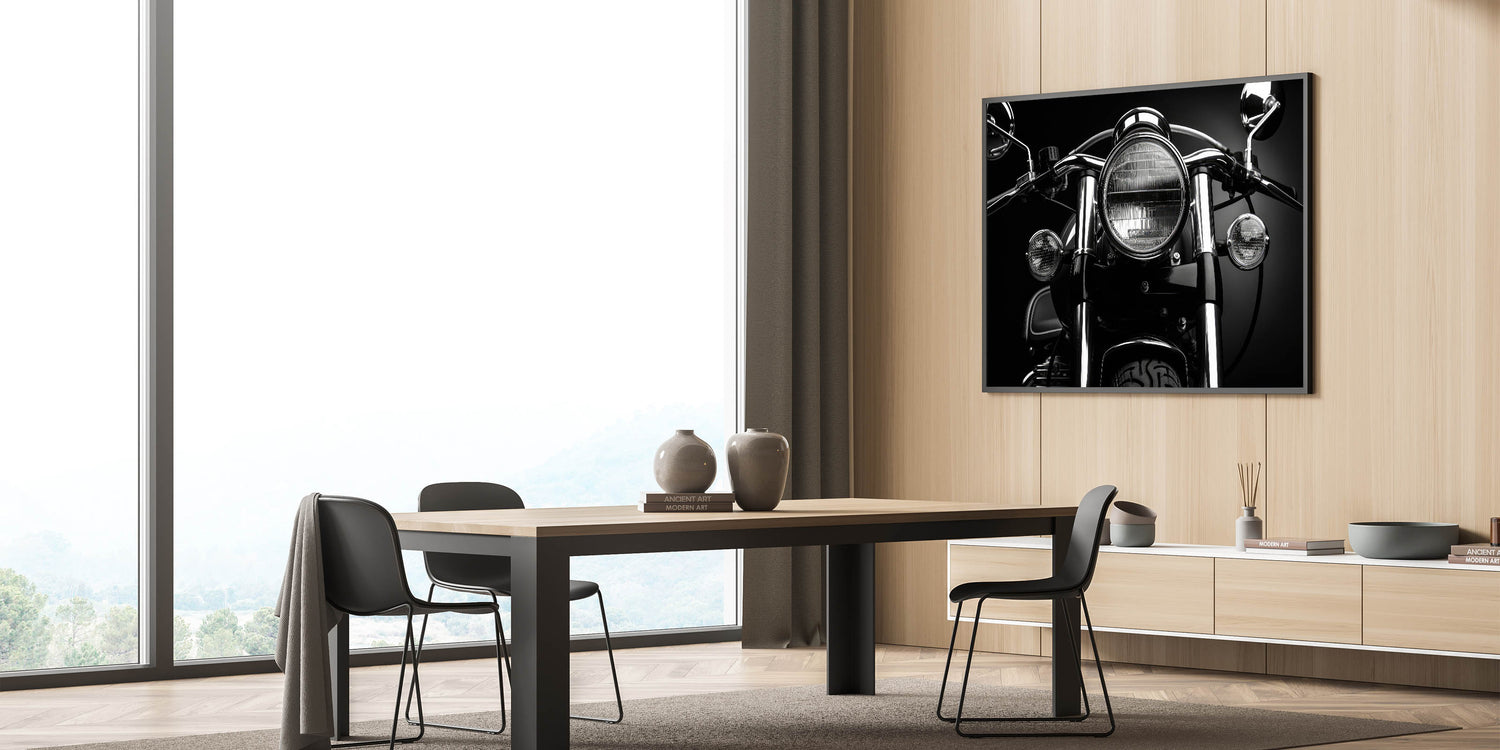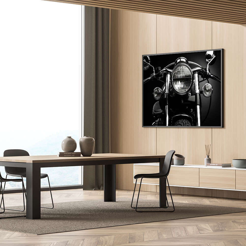 This motorcycle-themed wall art is perfect for those who appreciate classic design and modern minimalism. Whether you’re a motorcycle enthusiast or just love the clean, impactful look of monochrome art, this unique motorcycle wall decor will make a powerful statement in any room.
