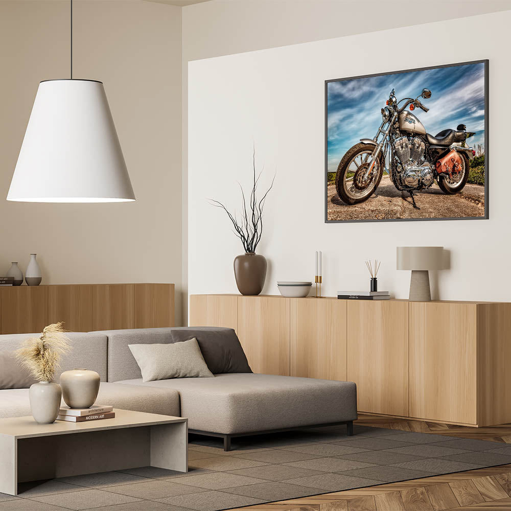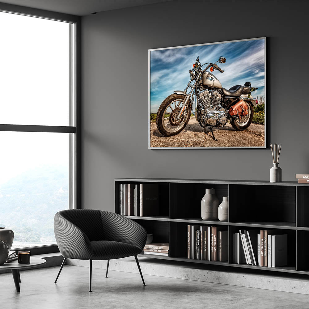 This Motorcycle Canvas Art Print is more than just wall decor; it’s a tribute to the timeless appeal of Harley Davidson motorcycles. Whether you're looking to enhance your living space or create a bold statement piece, this artwork is sure to impress. Order yours today and bring a piece of the open road into your home.