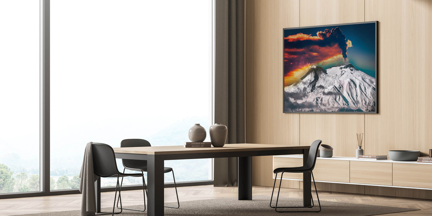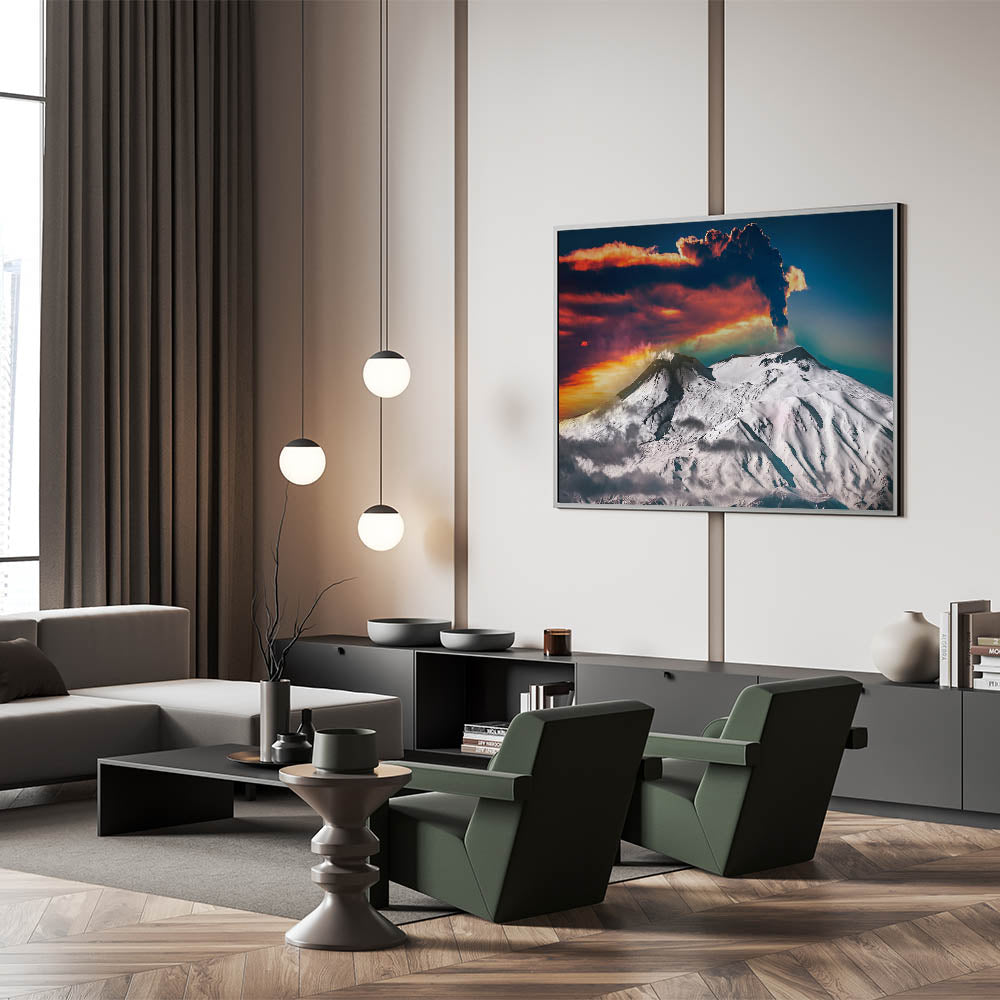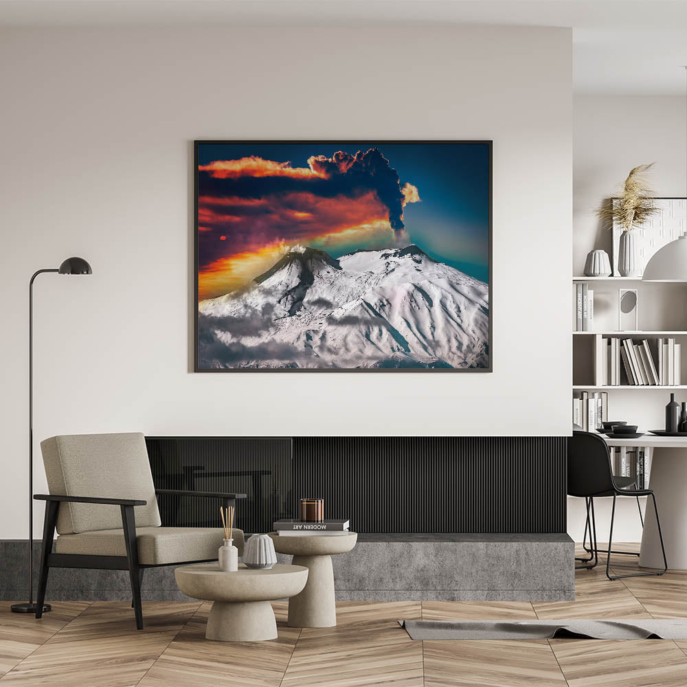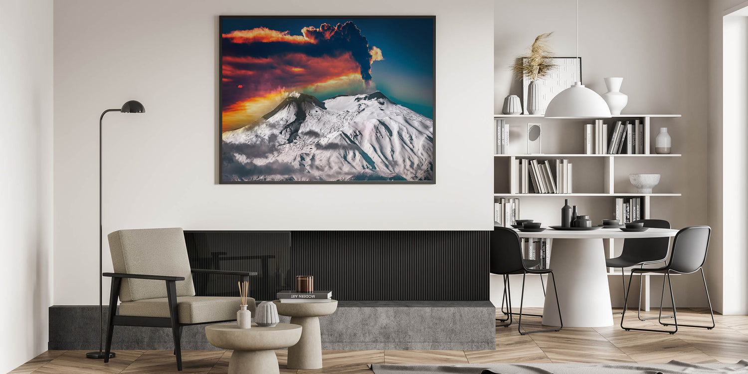 This Mount Etna canvas print offers a bold statement for any space, bringing the natural beauty and intensity of volcanic eruptions into your home decor. Perfect for those who appreciate the stunning contrasts of nature's landscapes.