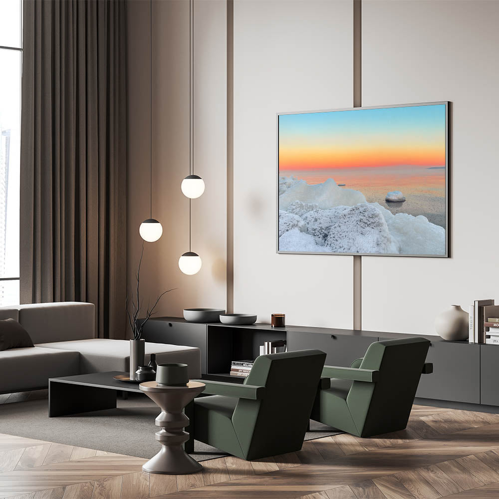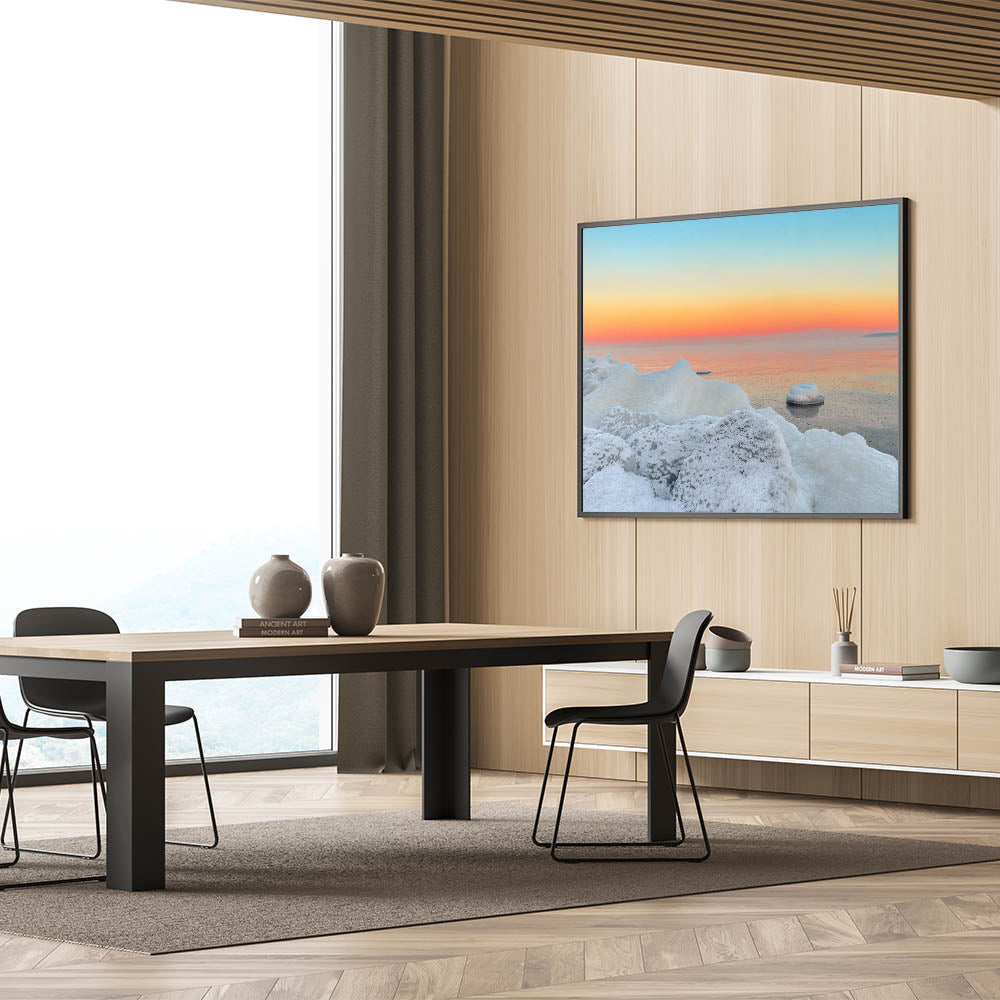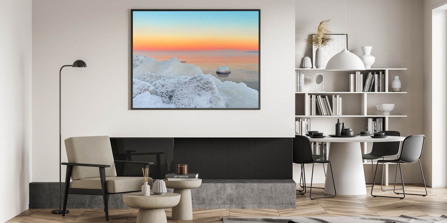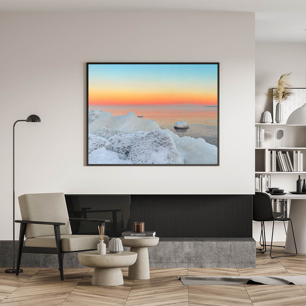 - High-resolution print that showcases the stunning details of the icy shore and colorful sky.