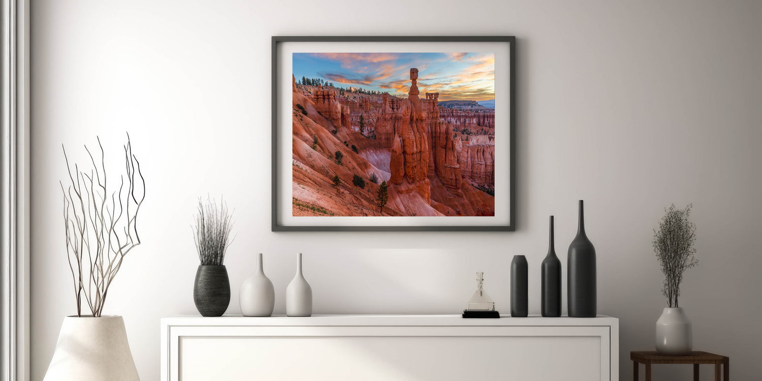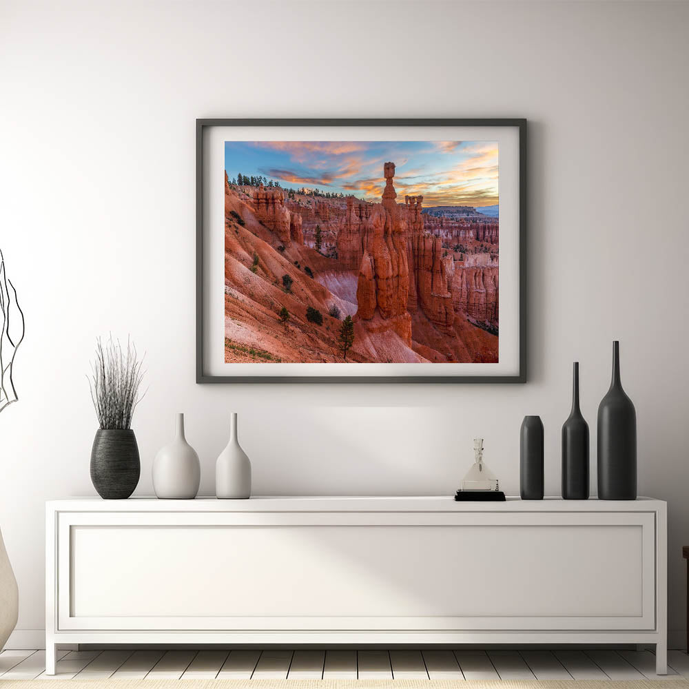Bring the wonders of the American West into your home with unique Bryce Canyon artwork that captures the grandeur of the canyon's natural beauty. Add this to your collection for a timeless reflection of Bryce Canyon photography prints.