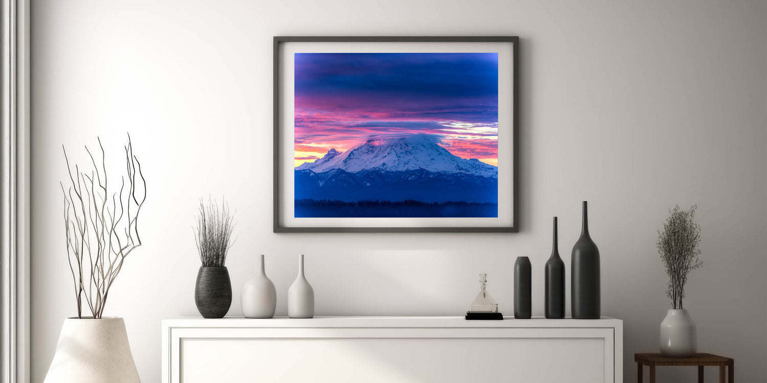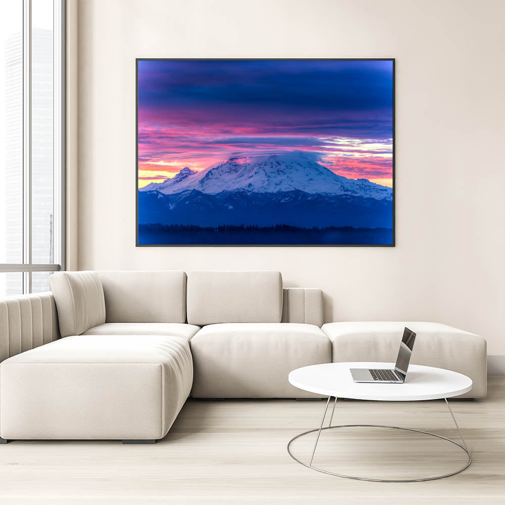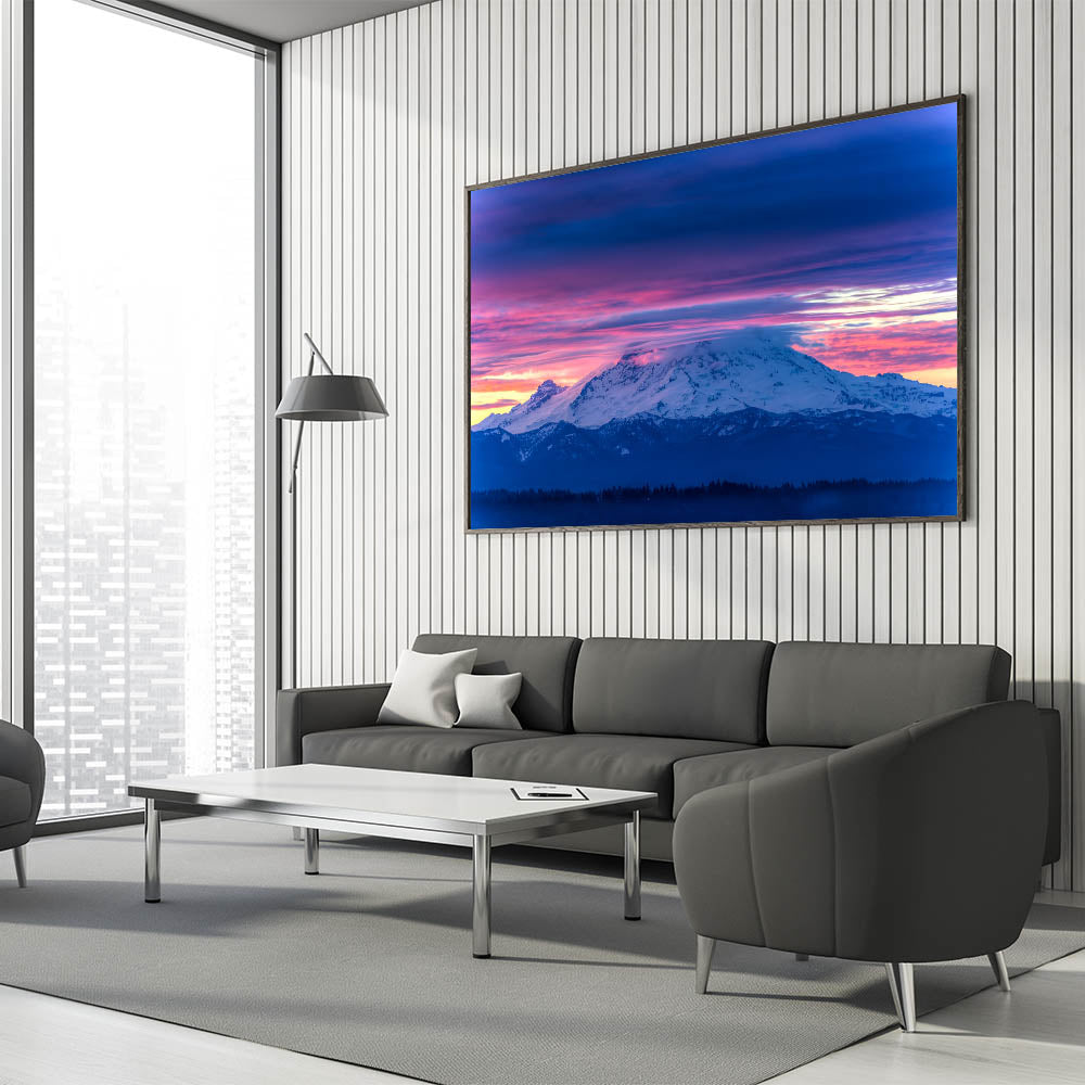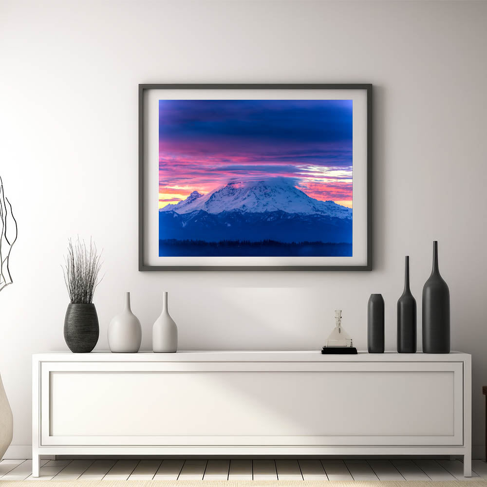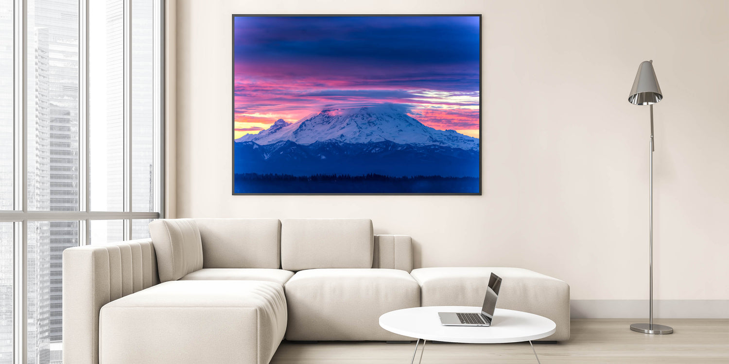 - Available Formats: Stretched canvas, framed Mount Rainier art, acrylic glass, rolled canvas, and fine art prints.