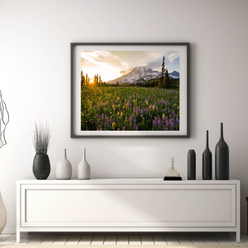 Capture the essence of a serene morning in Mount Rainier National Park with this beautiful wildflower sunrise art print. Available in a variety of formats, it’s the perfect way to brighten up any room.