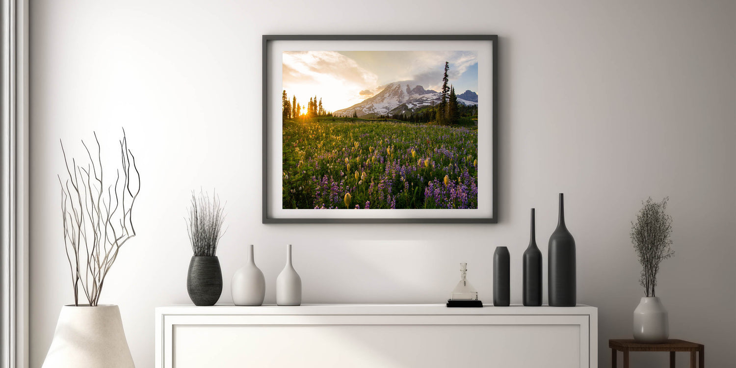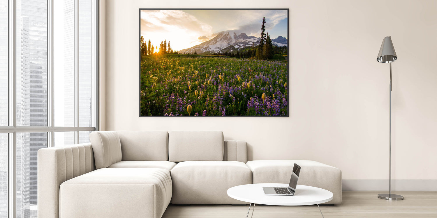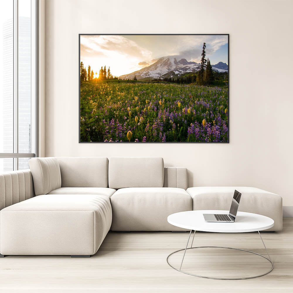 Mount Rainier Wildflower Sunrise Art - Canvas and Framed Prints