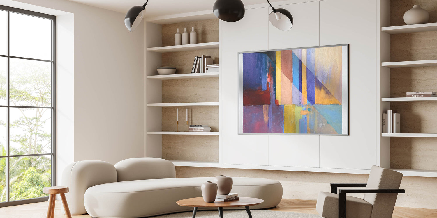 - Contemporary wall art design with a vibrant geometric composition