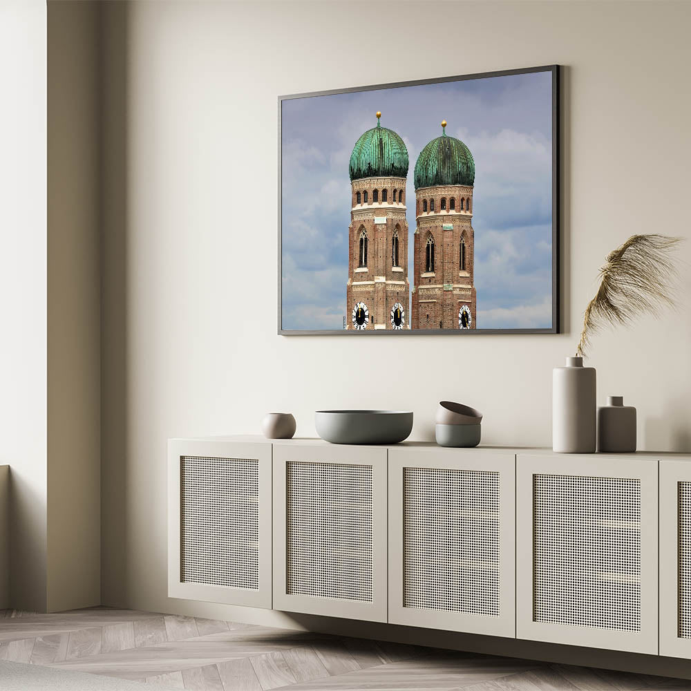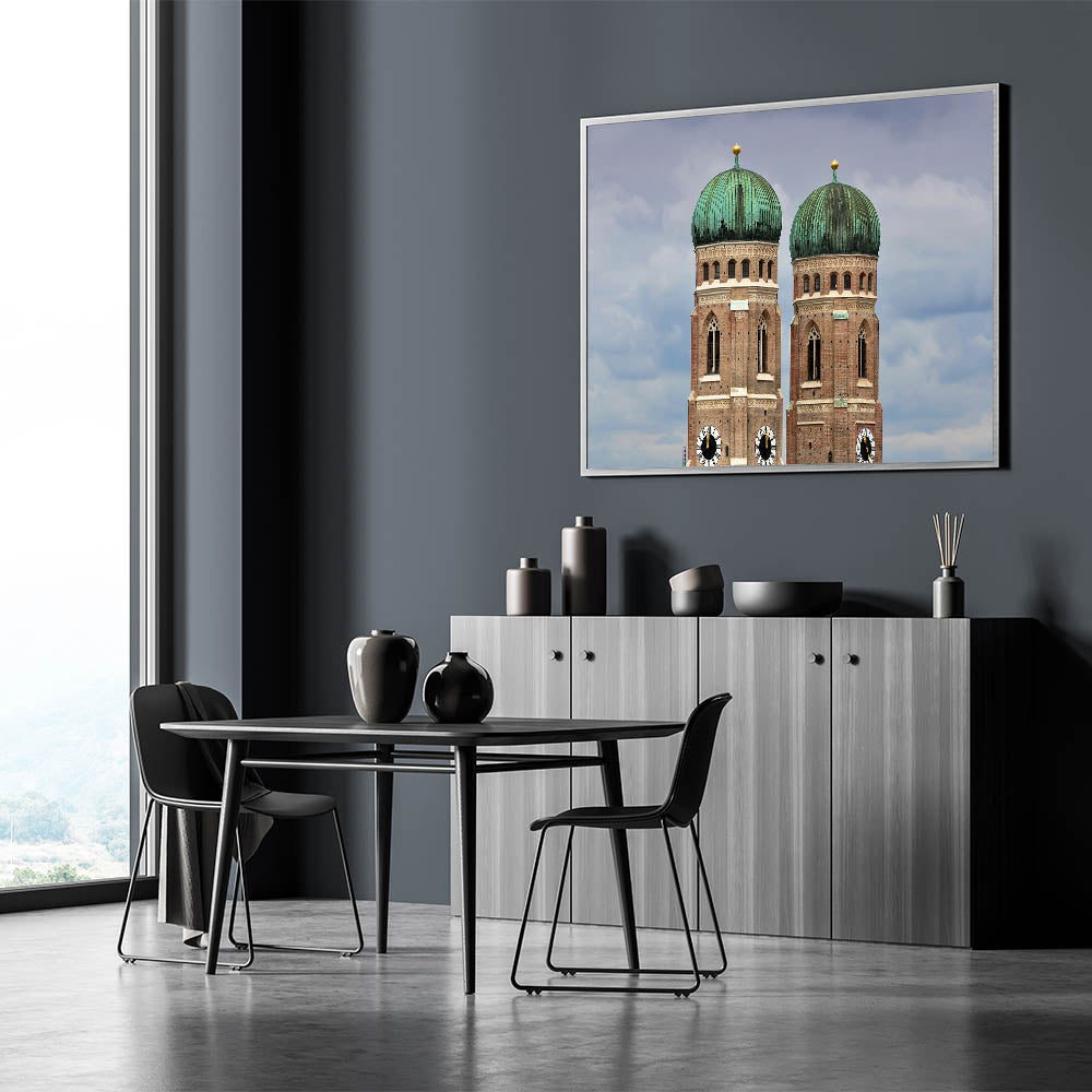 Bring the beauty of Munich’s iconic architecture into your space with this stunning wall art featuring the twin towers of the Frauenkirche. A symbol of the city's rich history and culture, this Munich cityscape wall art captures the essence of Bavarian architecture. Perfect for anyone who admires German city skylines and historic landmarks, this piece will elevate the aesthetic of any home or office.