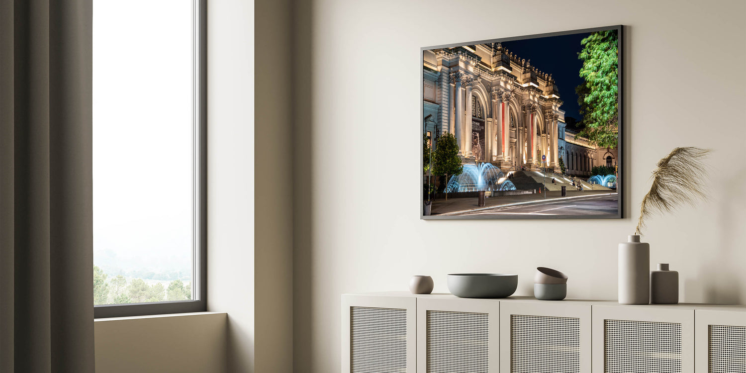 Elevate your space with this captivating museum wall art that beautifully captures the grandeur of a historic museum illuminated at night. This artwork showcases the intricate details of the building's classical architecture, highlighted by the soft glow of evening lights, creating a perfect blend of elegance and mystery. Ideal for lovers of historic architecture and those looking to add a sophisticated touch to their decor, this piece is a true reflection of timeless beauty.