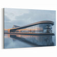 Transform your space with the sleek elegance of this modern glass pavilion wall art. The artwork captures the stunning reflections of a contemporary architectural marvel, set against a serene body of water. The clean lines and expansive glass surfaces of the pavilion create a harmonious balance between built and natural environments, making this piece a perfect addition to spaces that value simplicity and modern design.