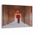 Monk with Red Umbrella Myanmar Wall Art - Tranquil Temple Corridor Scene