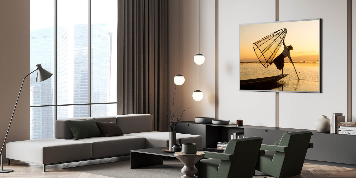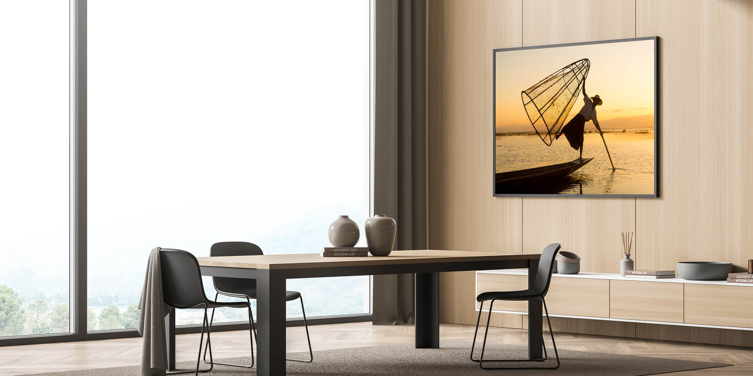 Traditional Fisherman at Sunset Myanmar Wall Art - Inle Lake Culture
