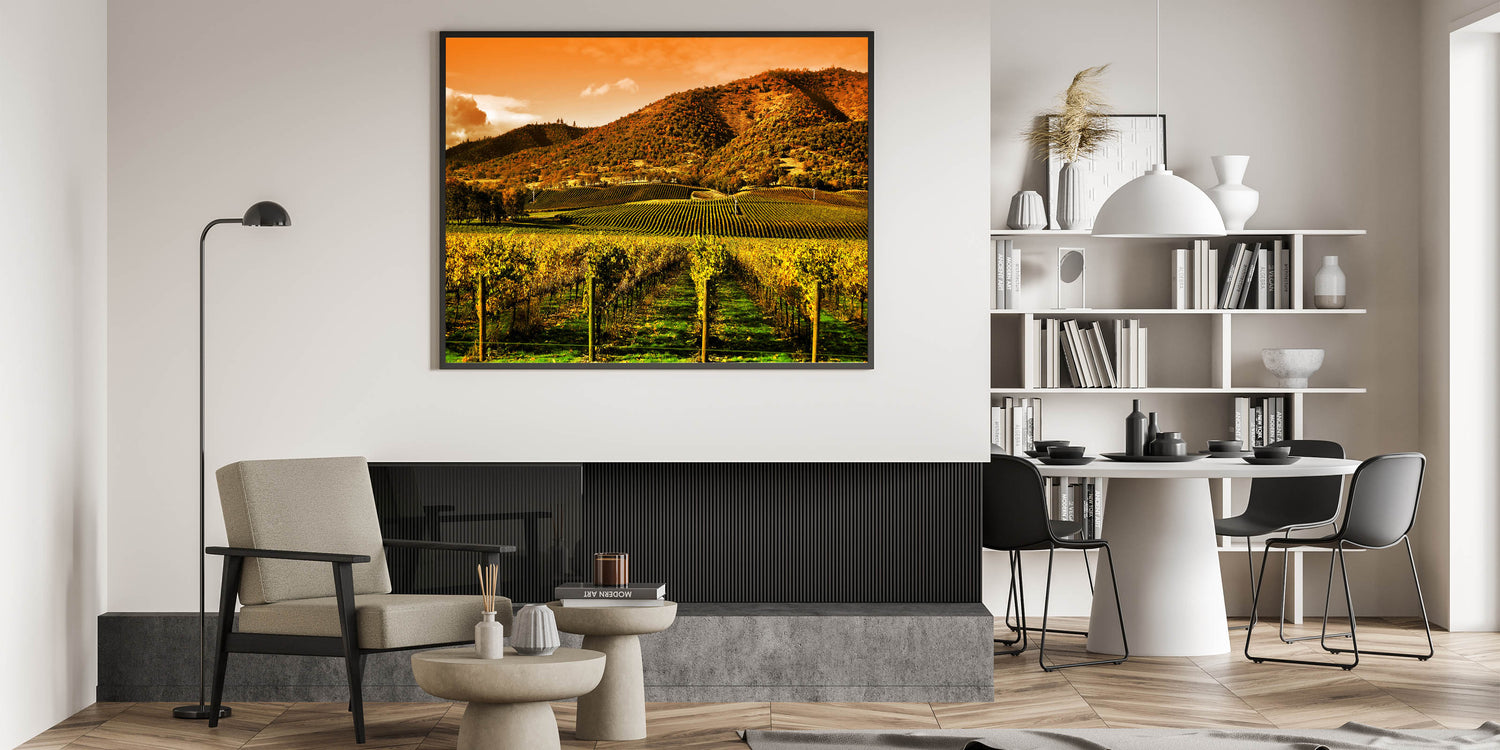 Enhance your space with the warmth and serenity of Napa Valley. This wall art brings the scenic beauty of California’s famous vineyards into your home, offering a perfect blend of nature and tranquility. Available in multiple sizes and formats, it’s an ideal addition for anyone looking to celebrate the natural beauty of wine country.