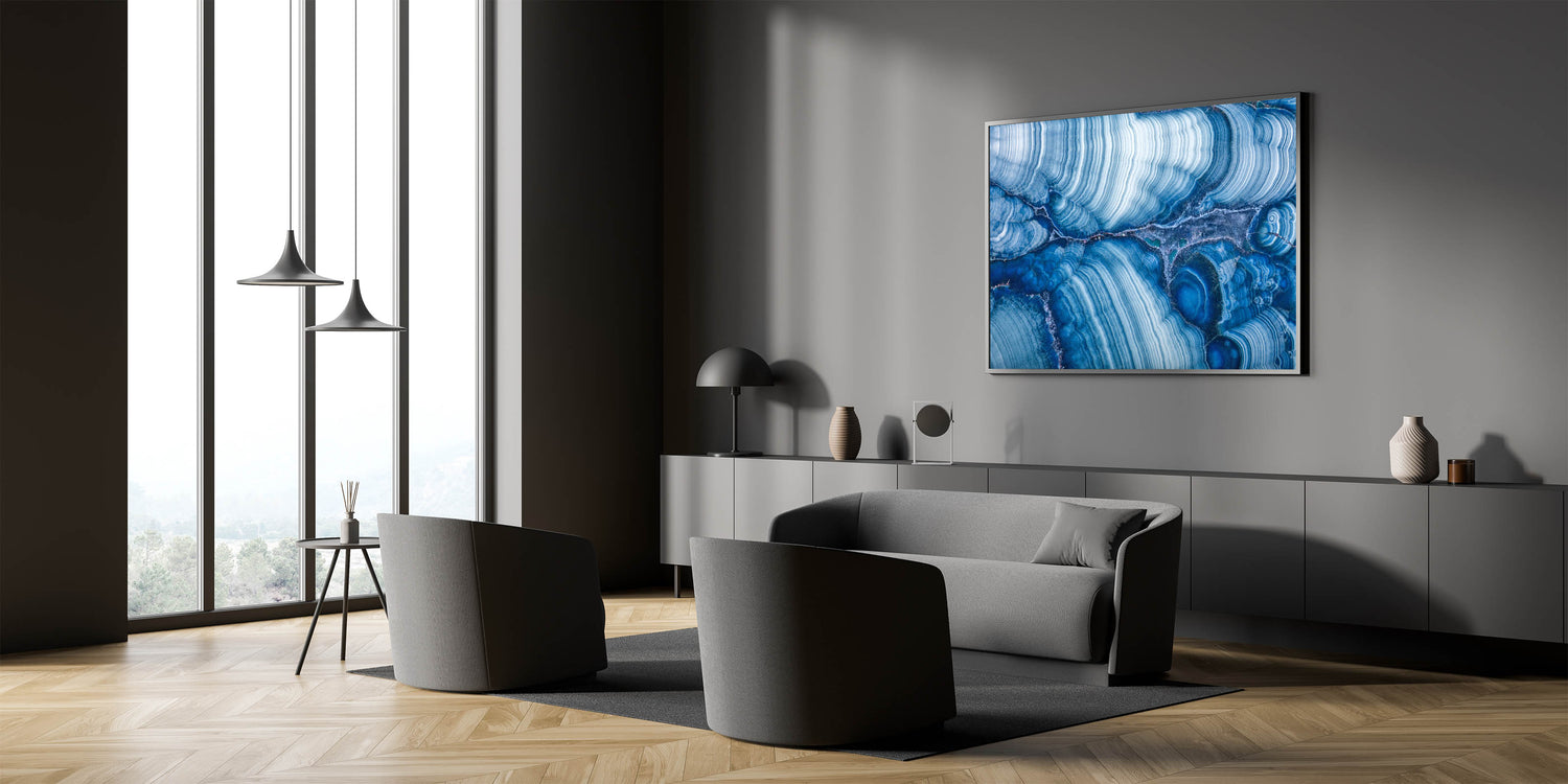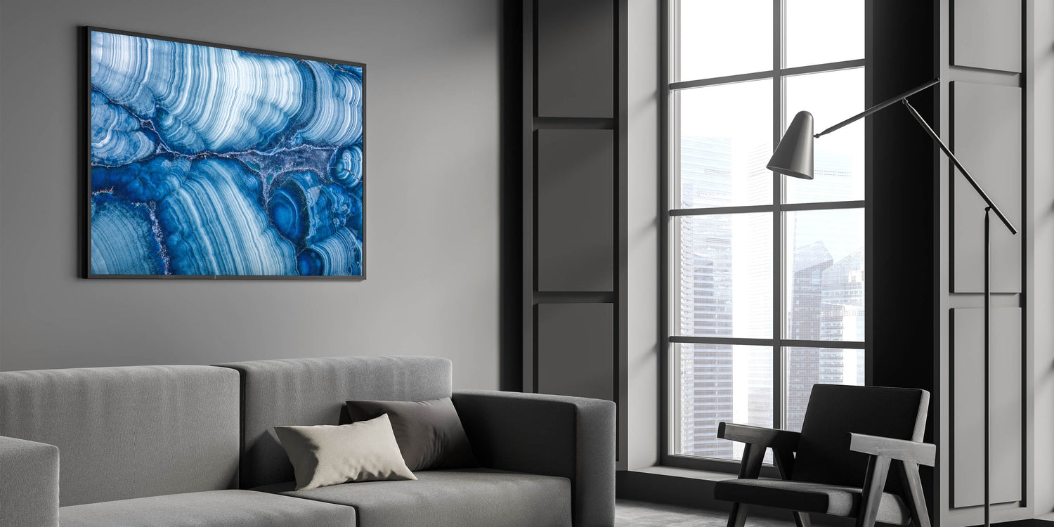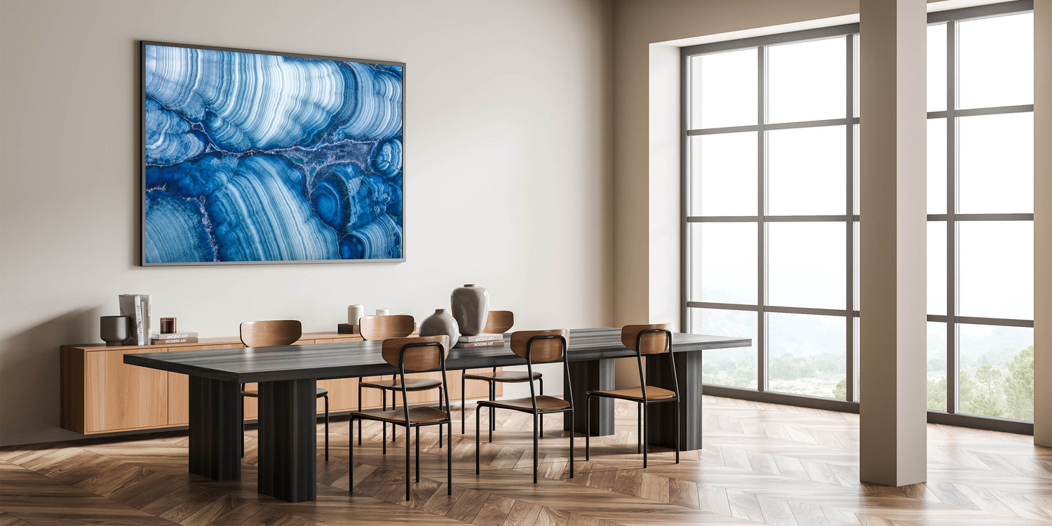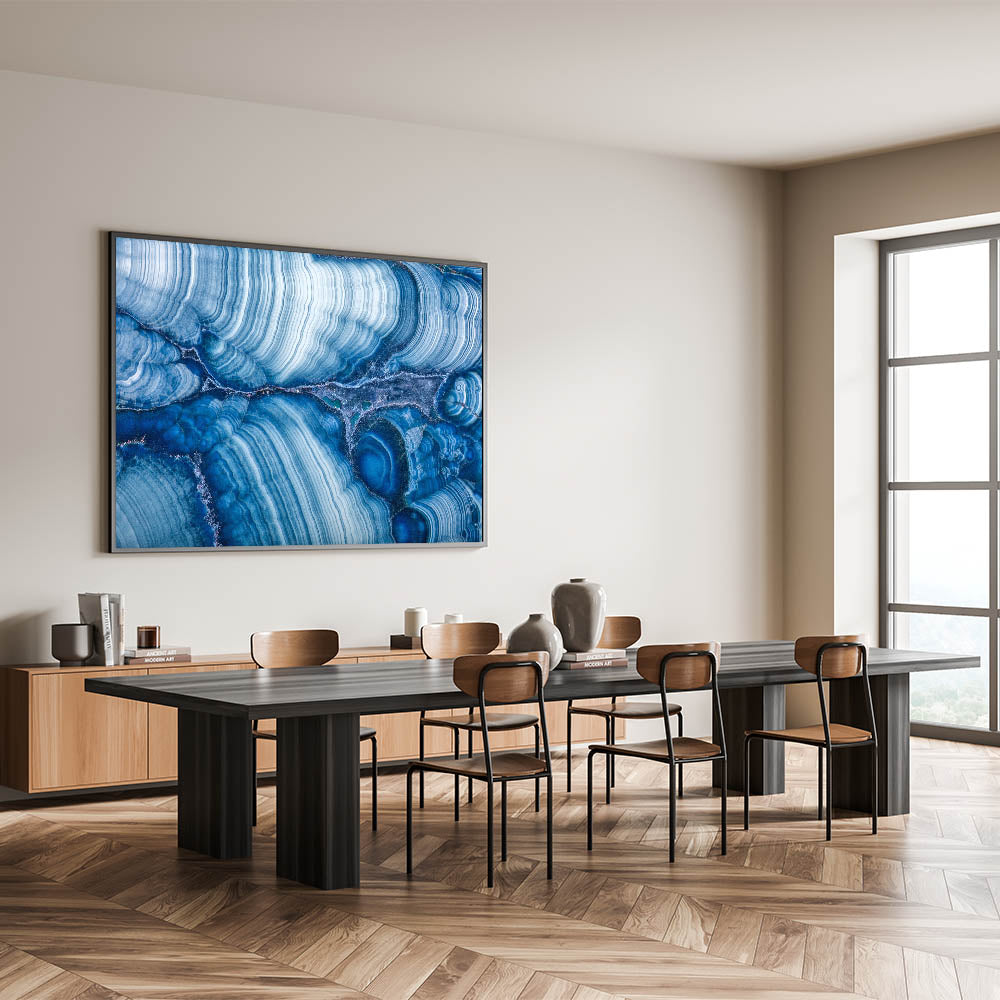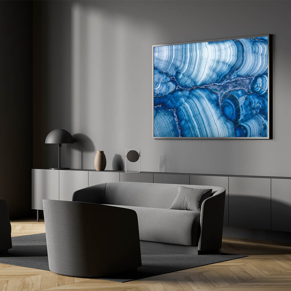 Enhance your home decor with this striking abstract wall art that captures the beauty of natural stone patterns in stunning blue tones. This nature-inspired design offers a modern and sophisticated look, perfect for adding a tranquil yet artistic element to any room. The vibrant layers of blue and teal mimic the texture of geological formations, bringing the serenity of nature into your living space.