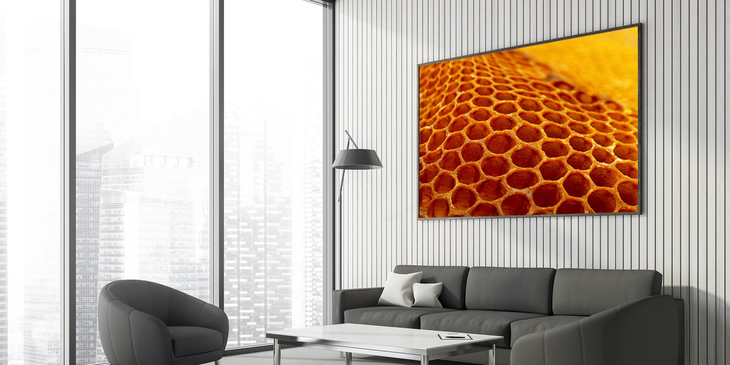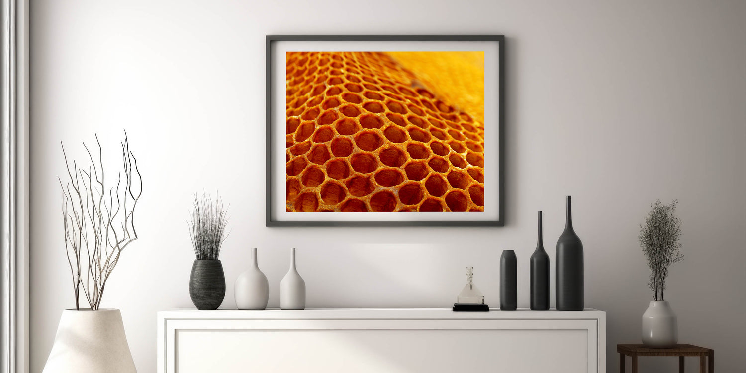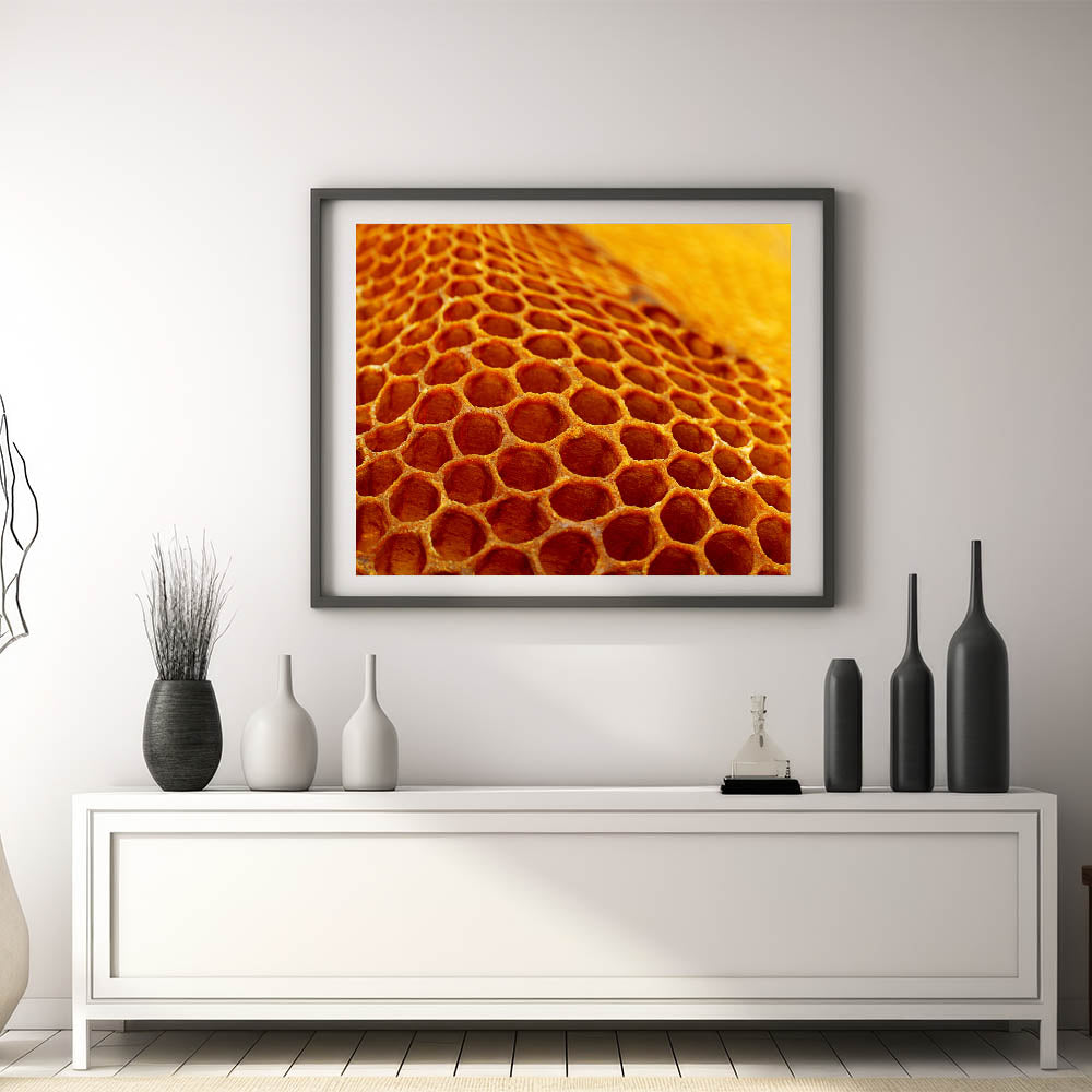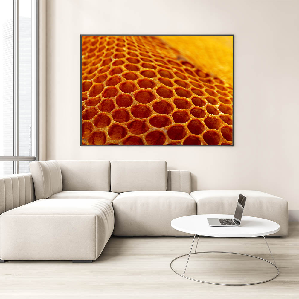 This honeycomb close-up wall art captures the essence of nature's intricate designs and brings a pop of color to your home. The warm hues and captivating pattern create a welcoming atmosphere wherever it's placed.