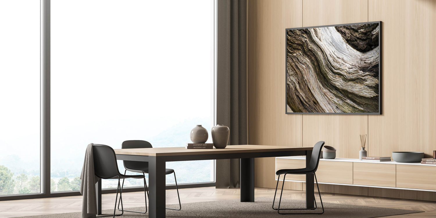 Elevate your interior with this natural wall decor, whether you choose a stretched canvas, framed print, or modern acrylic glass. The organic lines and textures of this wood closeup art provide a calming influence, ideal for enhancing your home’s atmosphere with natural elements.