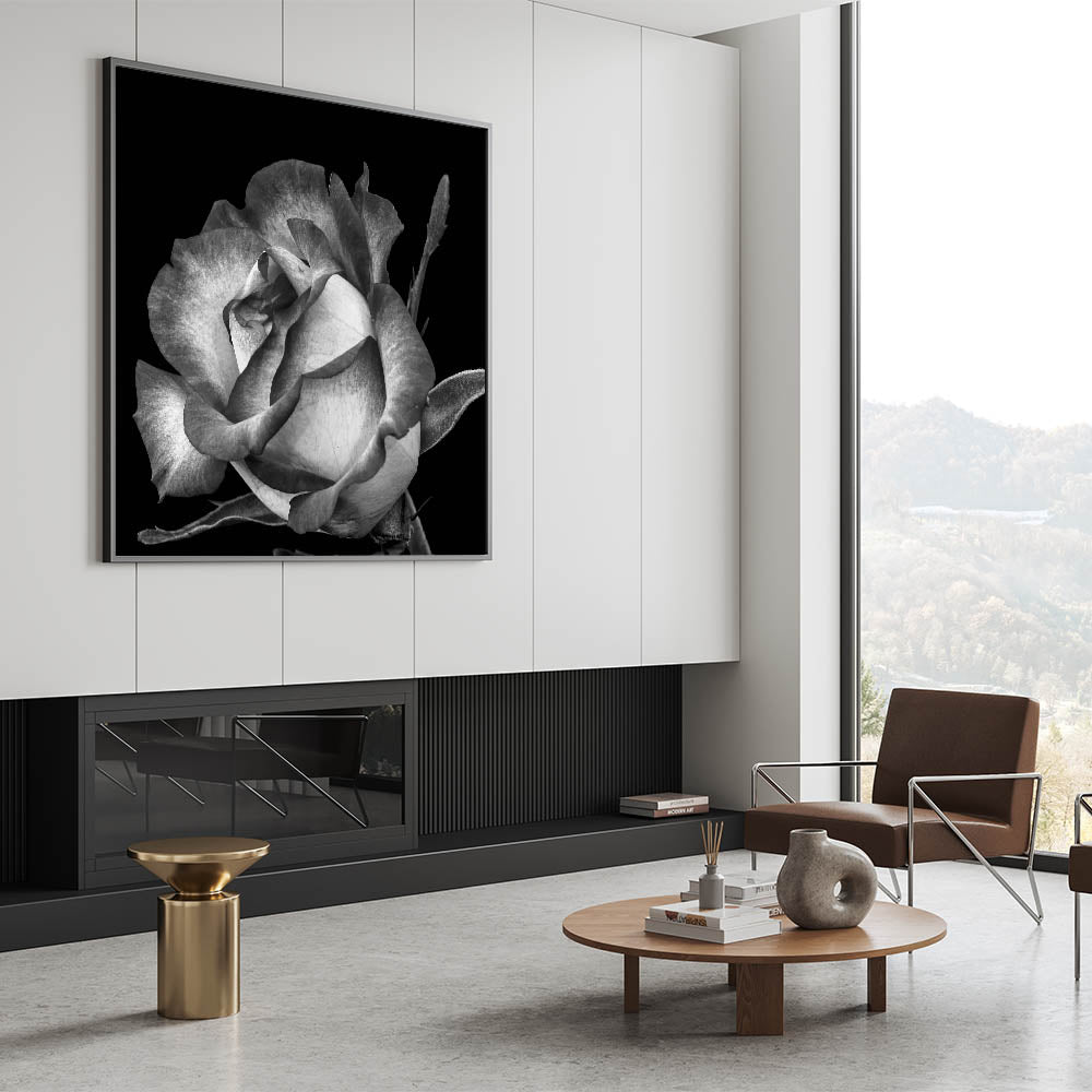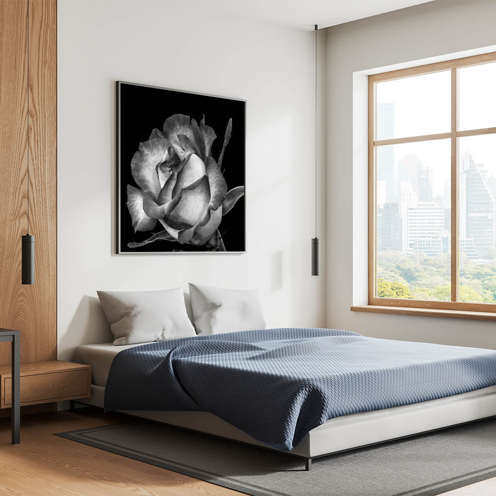 This timeless black and white rose wall art brings a classic and elegant touch to any space. The intricate details of the rose petals, captured in monochrome, evoke a sense of vintage charm and sophistication. Perfect for those who appreciate minimalist or modern aesthetics, this rose canvas print complements various interior styles, adding a subtle yet impactful focal point to any room.