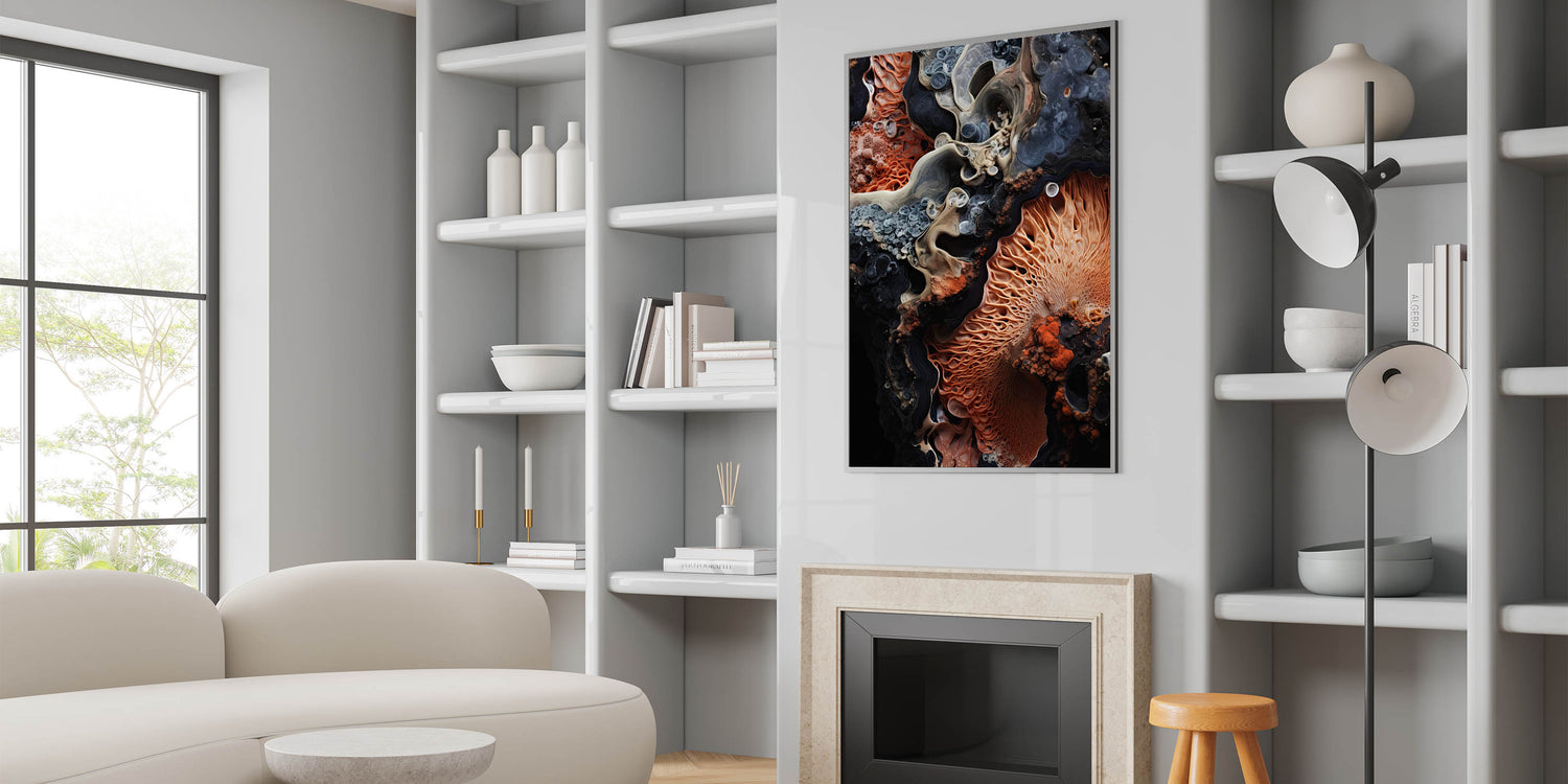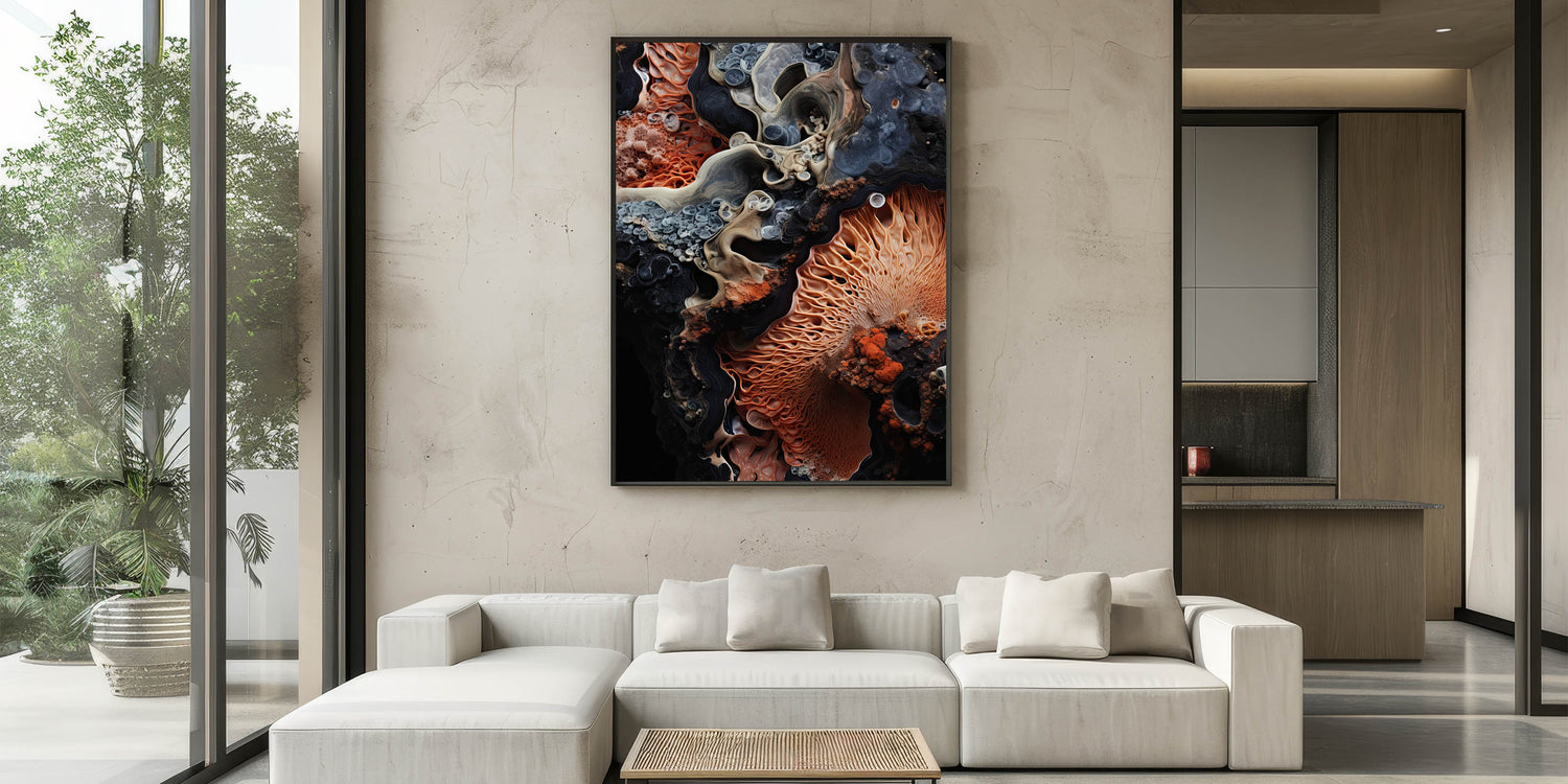 This abstract nature wall art is an excellent choice for living rooms, bedrooms, or offices, bringing a unique blend of natural beauty and artistic elegance to your decor. Its warm colors and detailed patterns make it a versatile piece that complements a range of interior styles.