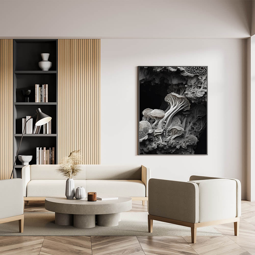 Intricate Mushroom Macro Wall Art – Organic Textures in Monochrome