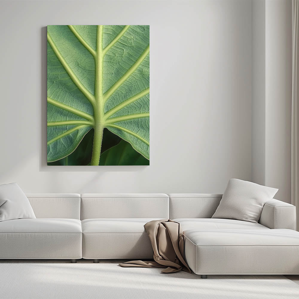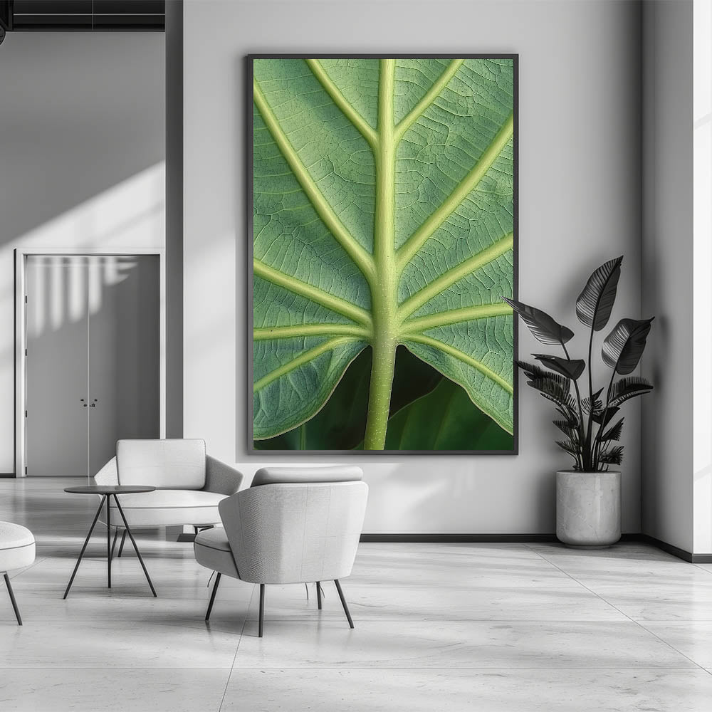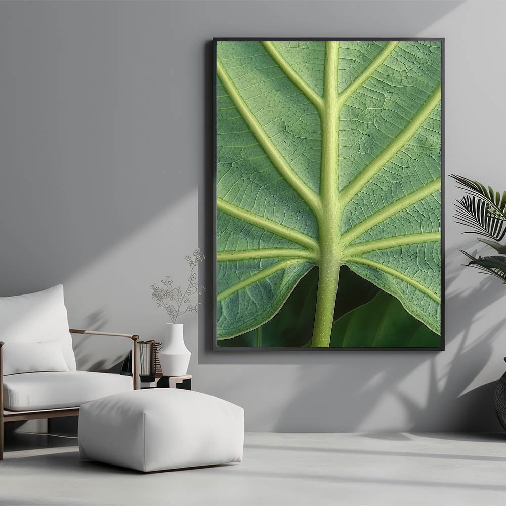 Celebrate the elegance of nature with this stunning nature close-up print, showcasing the intricate veins of a vibrant green tropical leaf. This detailed artwork brings a refreshing, organic touch to your interior, perfect for modern, minimalist, or botanical-inspired spaces.