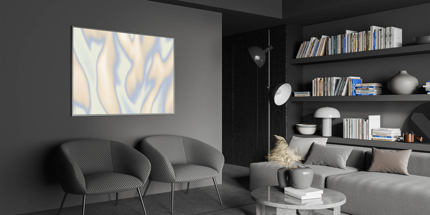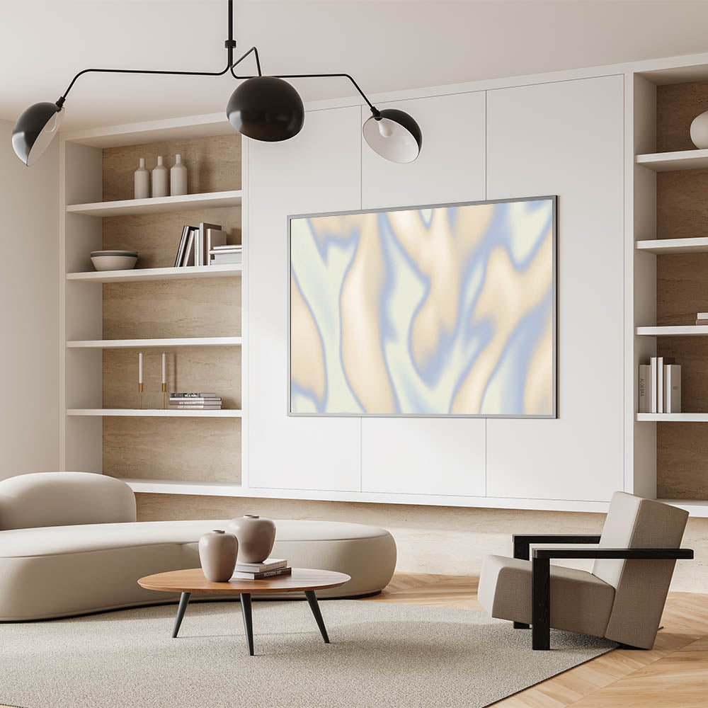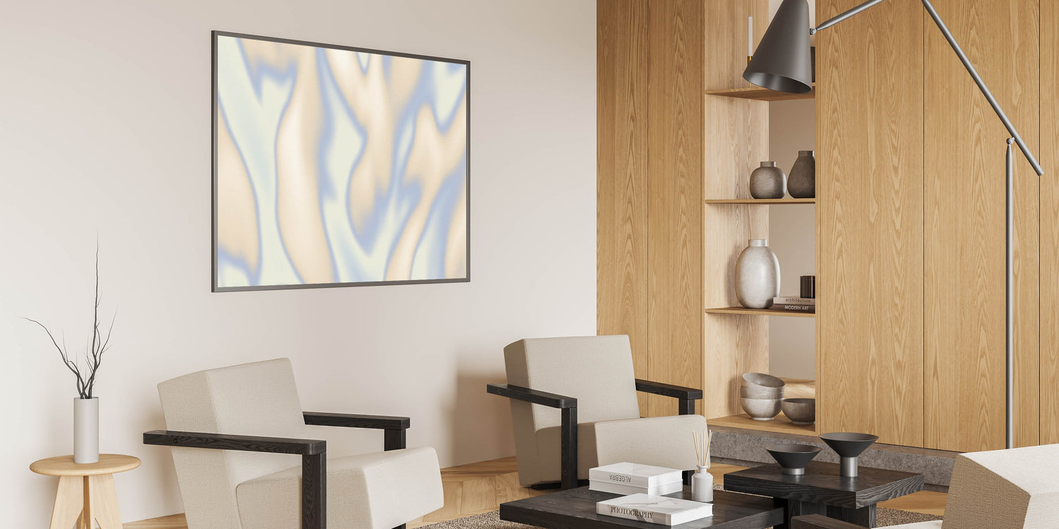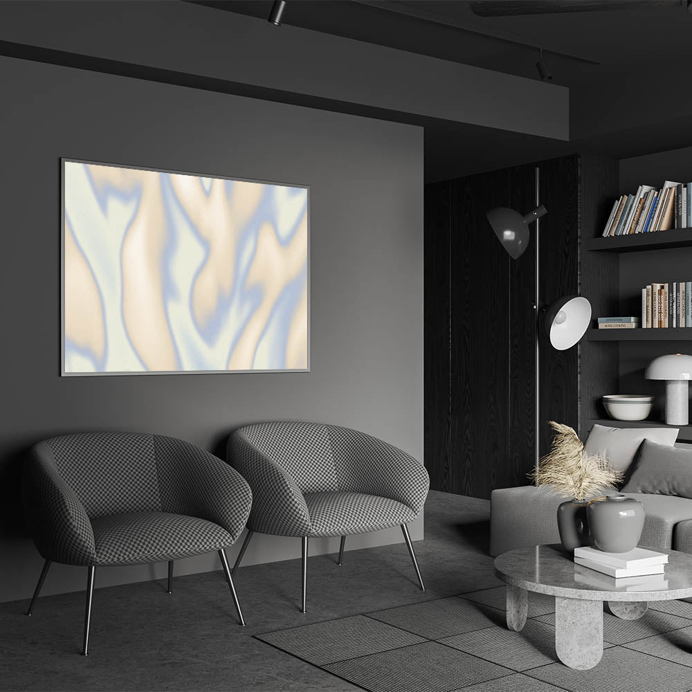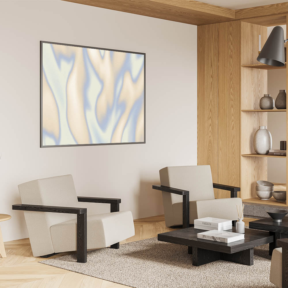 This captivating nature-inspired artwork features flowing gradients in soft beige and blue tones, evoking the tranquil beauty of nature. The abstract design combines smooth transitions of color with subtle grainy textures, creating a dynamic yet calming piece perfect for modern interiors. Whether used as a focal point or a complementary accent, this artwork brings a sense of harmony and balance to any space.