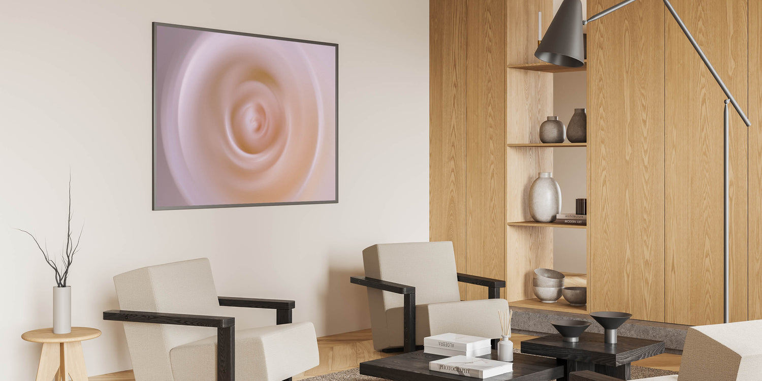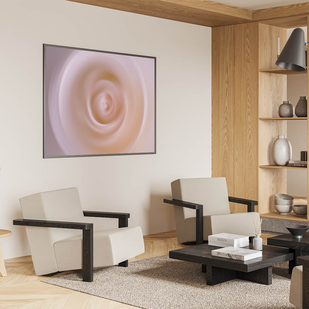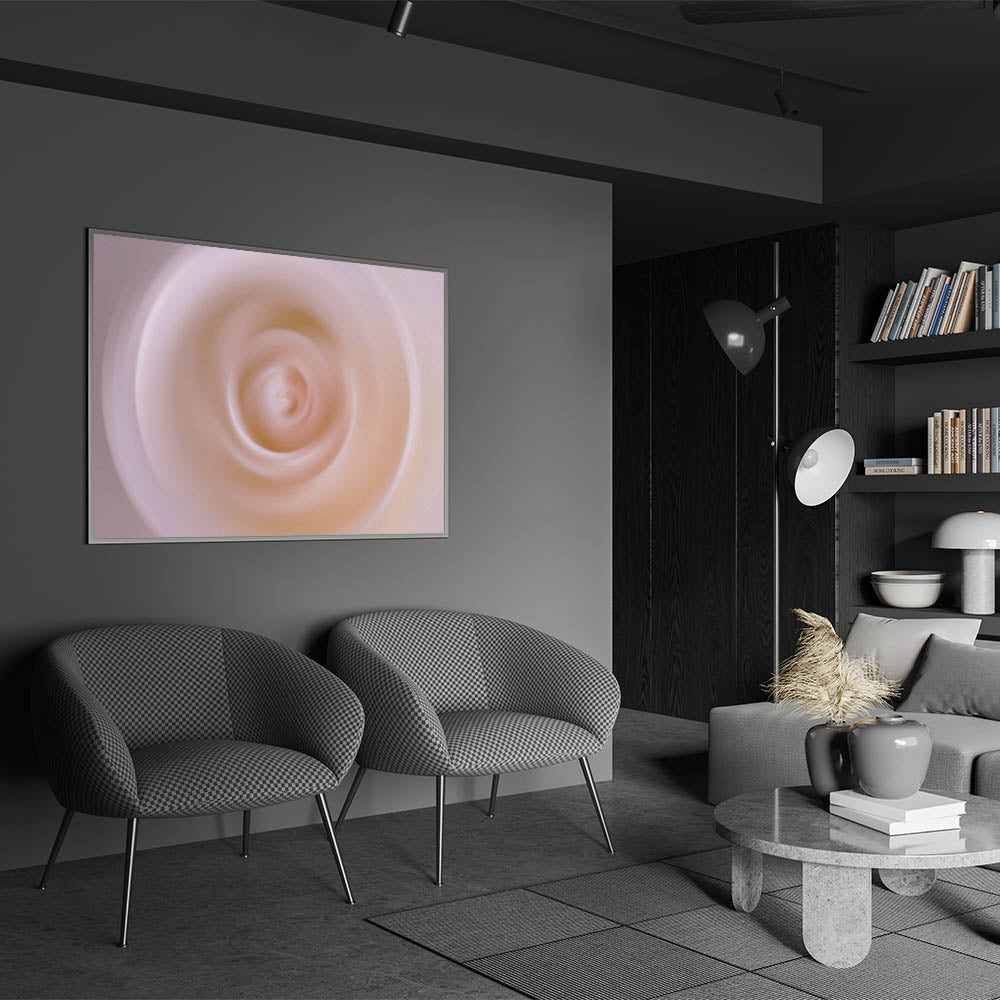 This mesmerizing nature-inspired artwork features a soft, swirling gradient in delicate beige tones. The abstract design creates a sense of depth and motion, inviting viewers to get lost in its gentle, flowing form. The grainy textures and smooth transitions of color evoke the serenity of natural elements like wind or water, making this artwork perfect for modern and minimalist interiors seeking a calming influence.