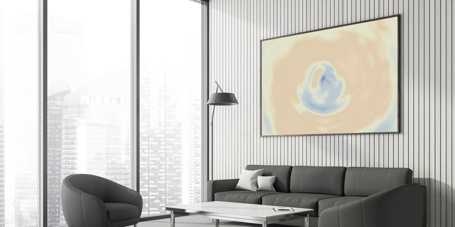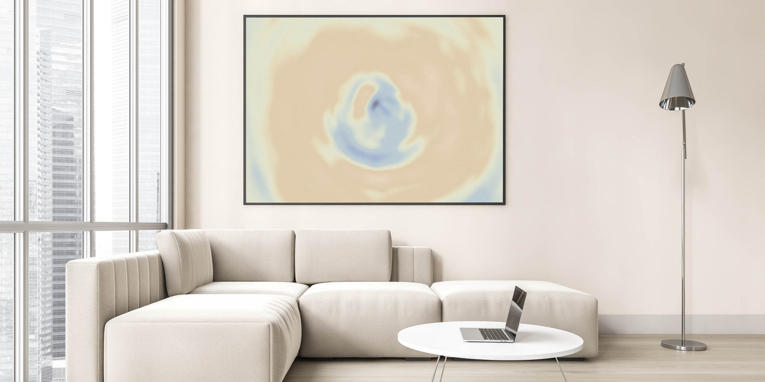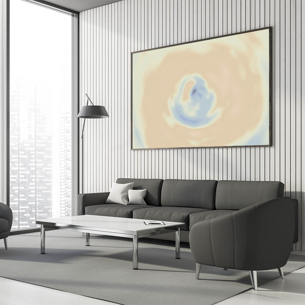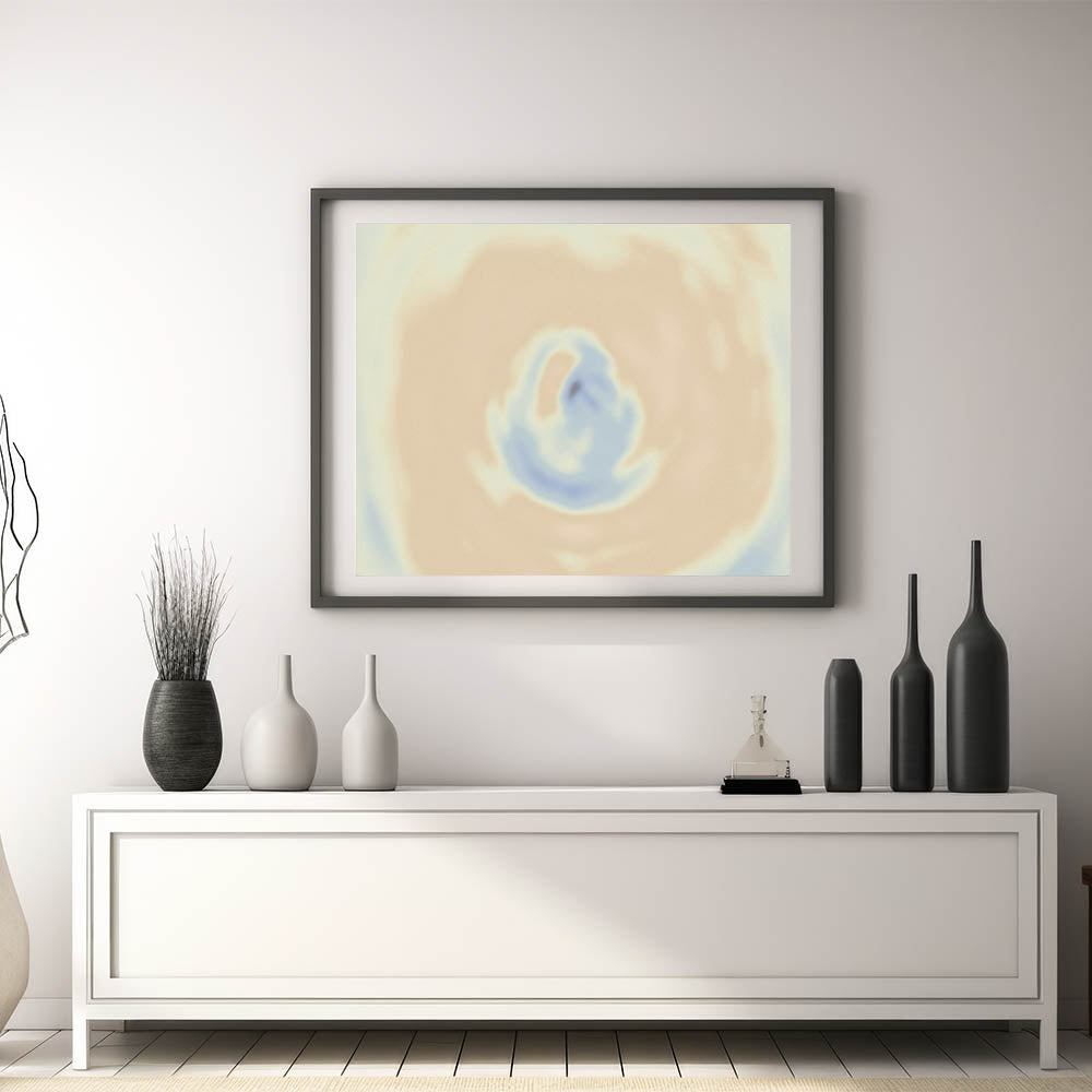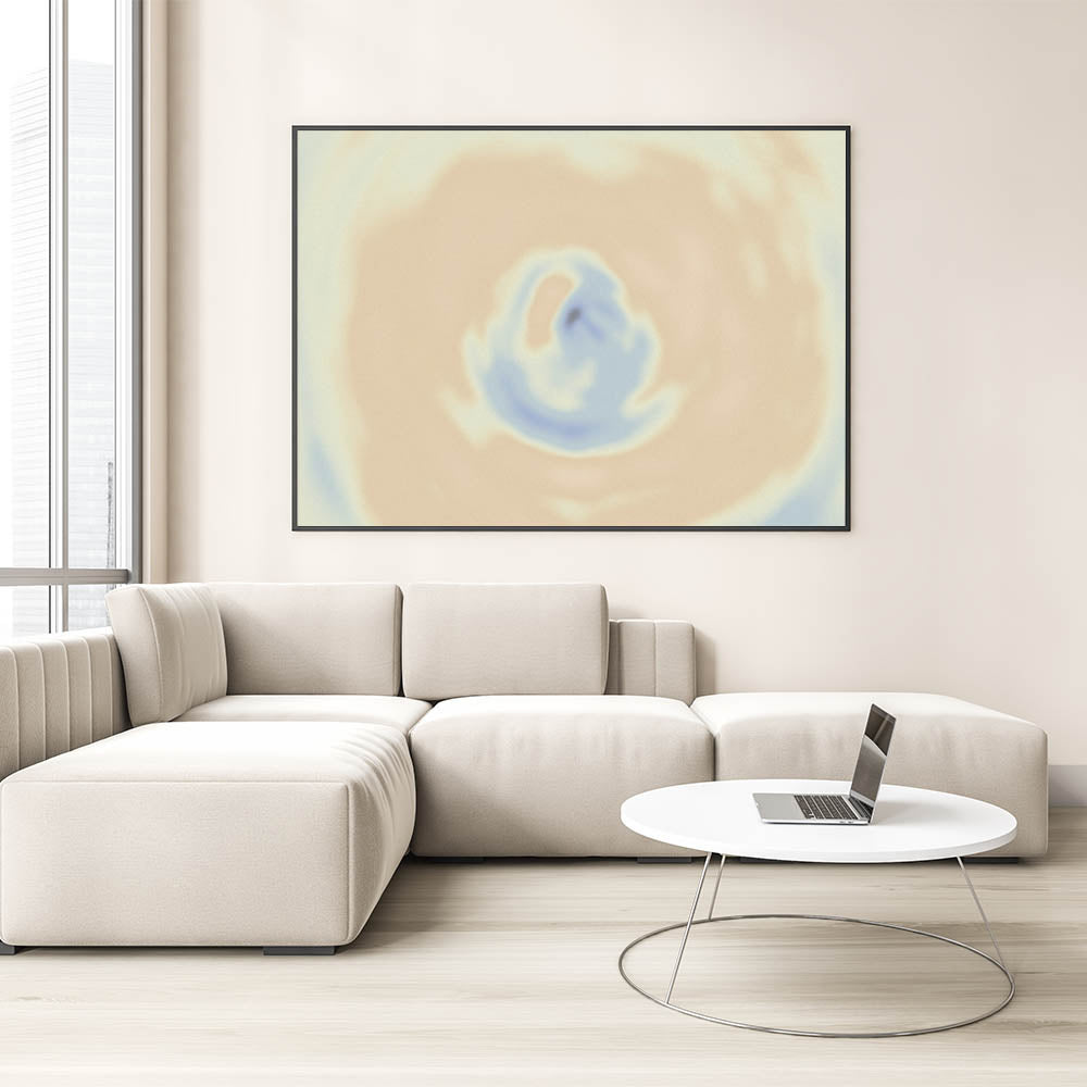 Bring a serene touch of nature to your living space with this nature-inspired grainy gradient artwork. Featuring soft natural hues, this abstract piece blends textured gradients in soothing tones of pastel beige and muted blue, creating a mesmerizing swirl reminiscent of nature's calming beauty. The artistic texture and soft gradient hues create a sense of depth and tranquility, perfect for modern home décor.