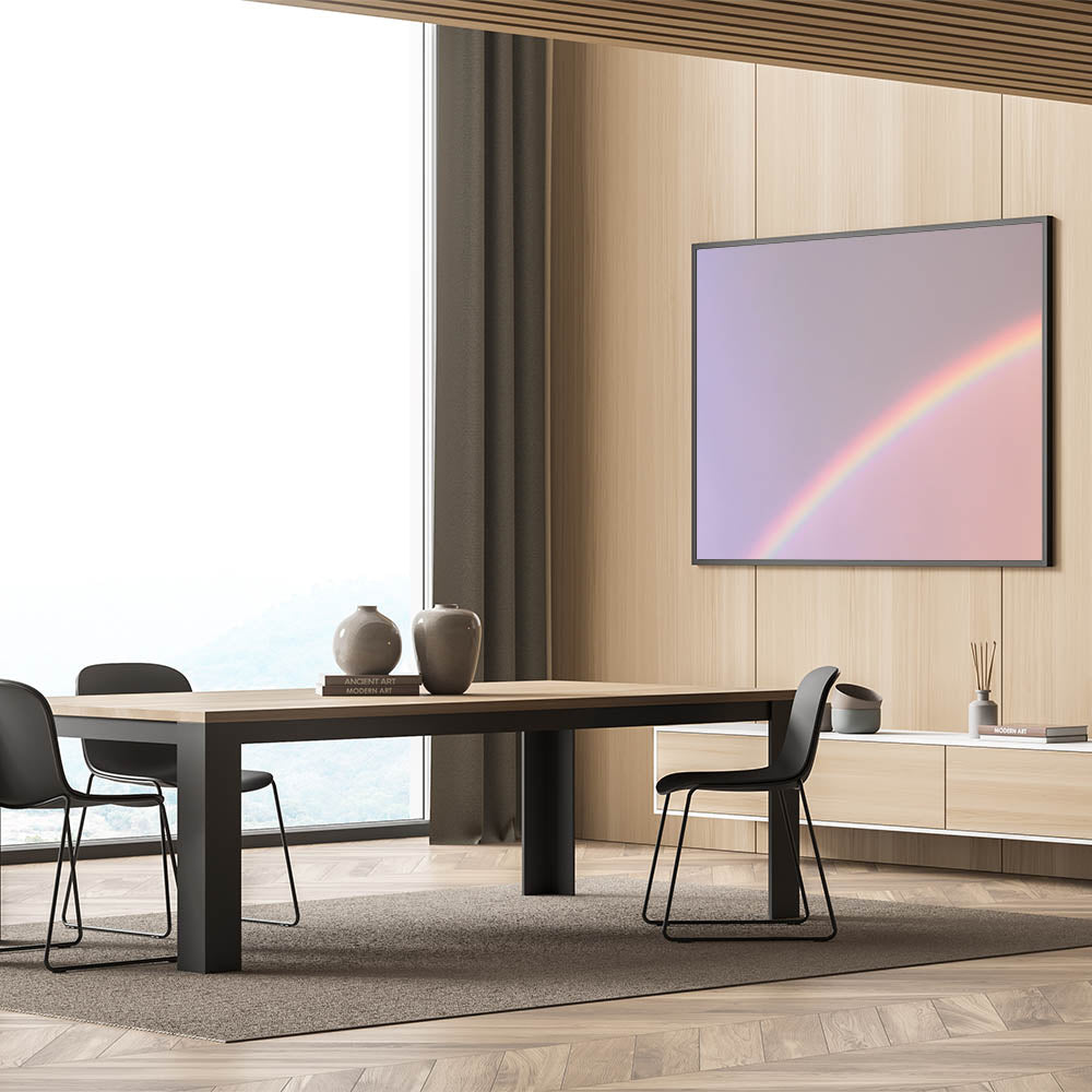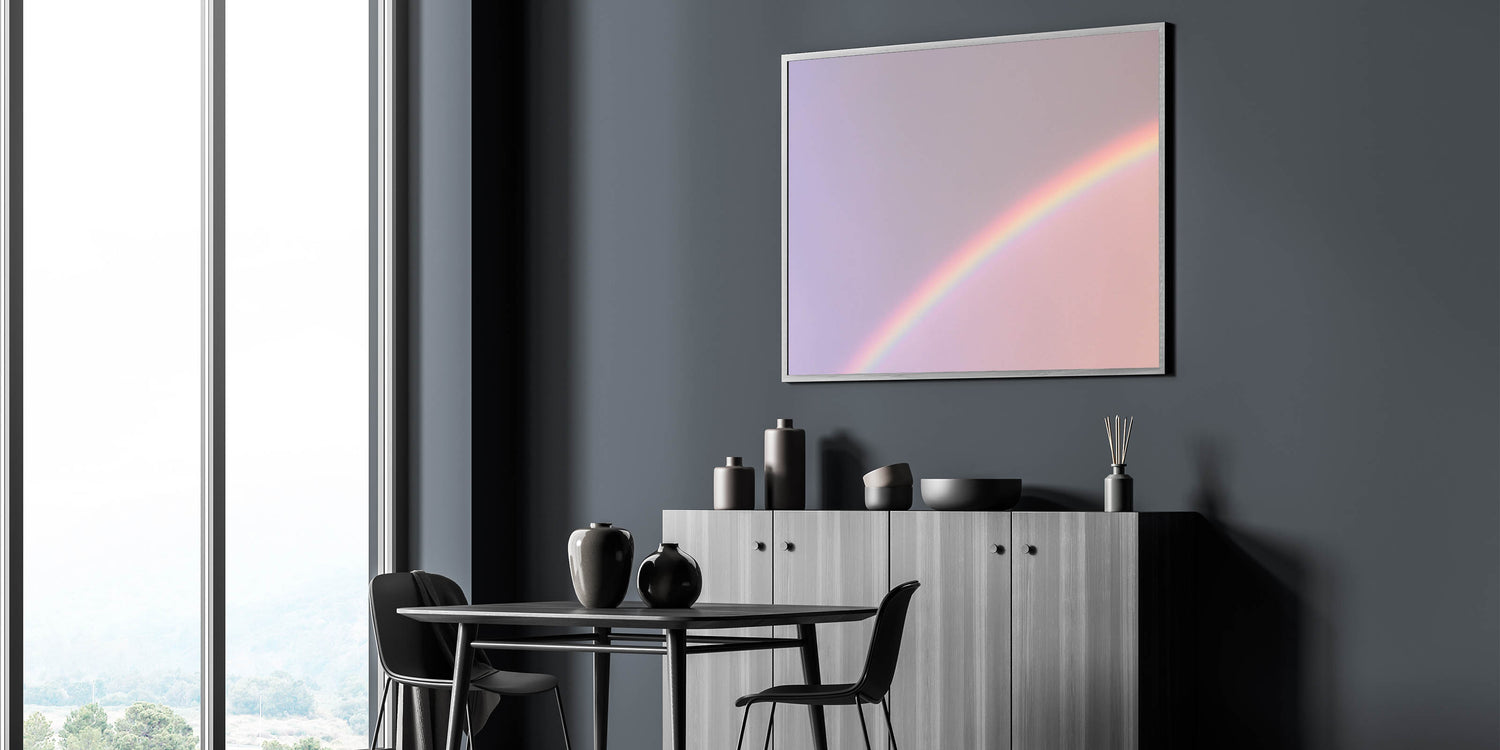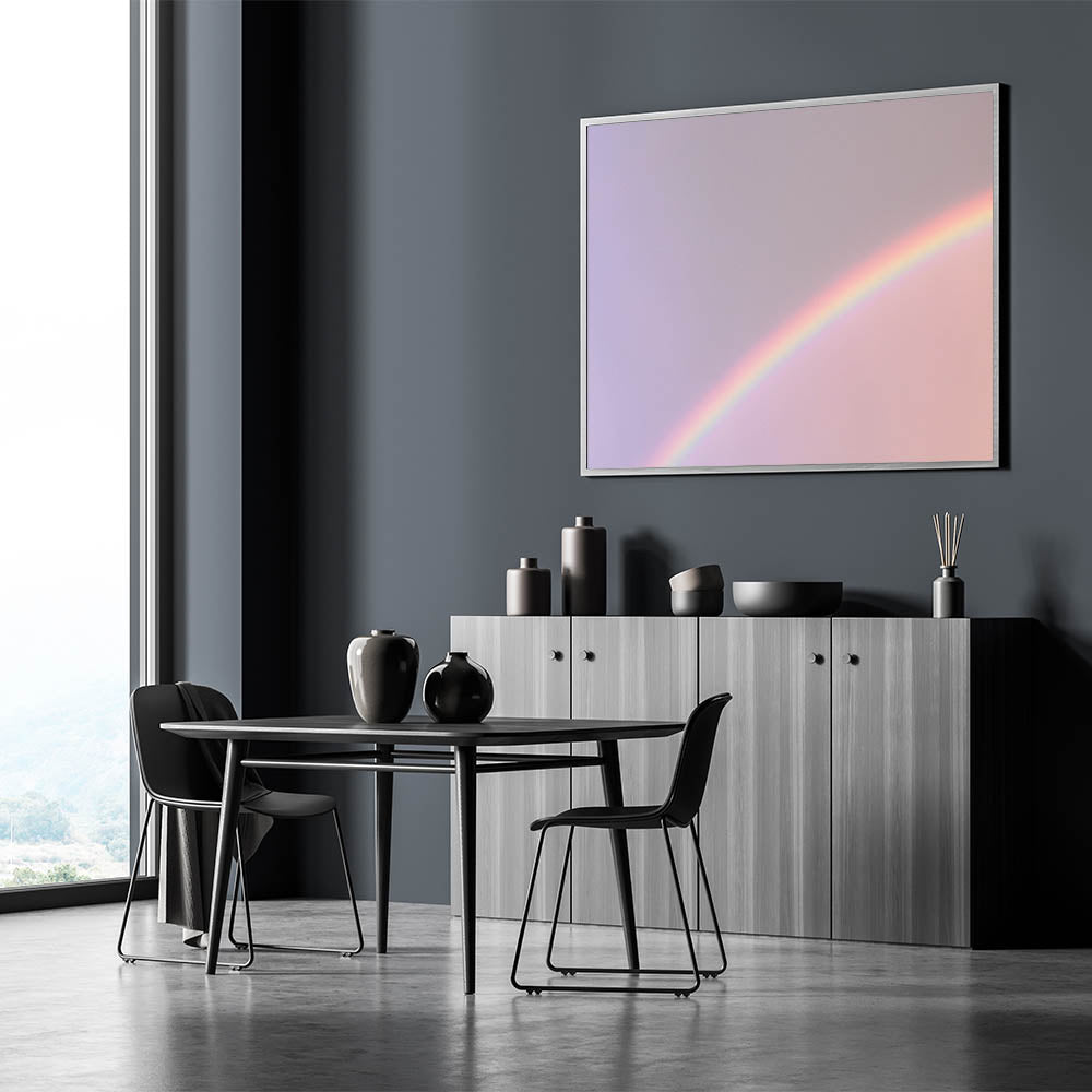 This modern wall art brings together the soothing qualities of pastel gradients with the dynamic energy of a rainbow. It's the perfect piece for those who want to infuse their space with positivity and light in a subtle, sophisticated way.