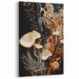 Elevate your decor with this striking mushroom macro wall art, a stunning blend of natural elegance and dynamic textures. Featuring high-resolution photography, this artwork showcases delicate mushrooms with flowing organic patterns set against a bold black background. The vibrant interplay of warm orange, soft cream, and rich black hues creates a sophisticated, eye-catching design perfect for modern interiors.