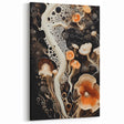 Add a dynamic touch of nature to your home with this fluid mushroom macro wall art. This unique piece showcases a closeup of mushrooms intertwined with abstract, creamy streams against a bold black background. The warm shades of peach and orange blend seamlessly with soft cream tones, creating a harmonious contrast that draws the viewer in. It’s a captivating artwork that beautifully highlights nature’s organic forms with a modern, abstract twist.