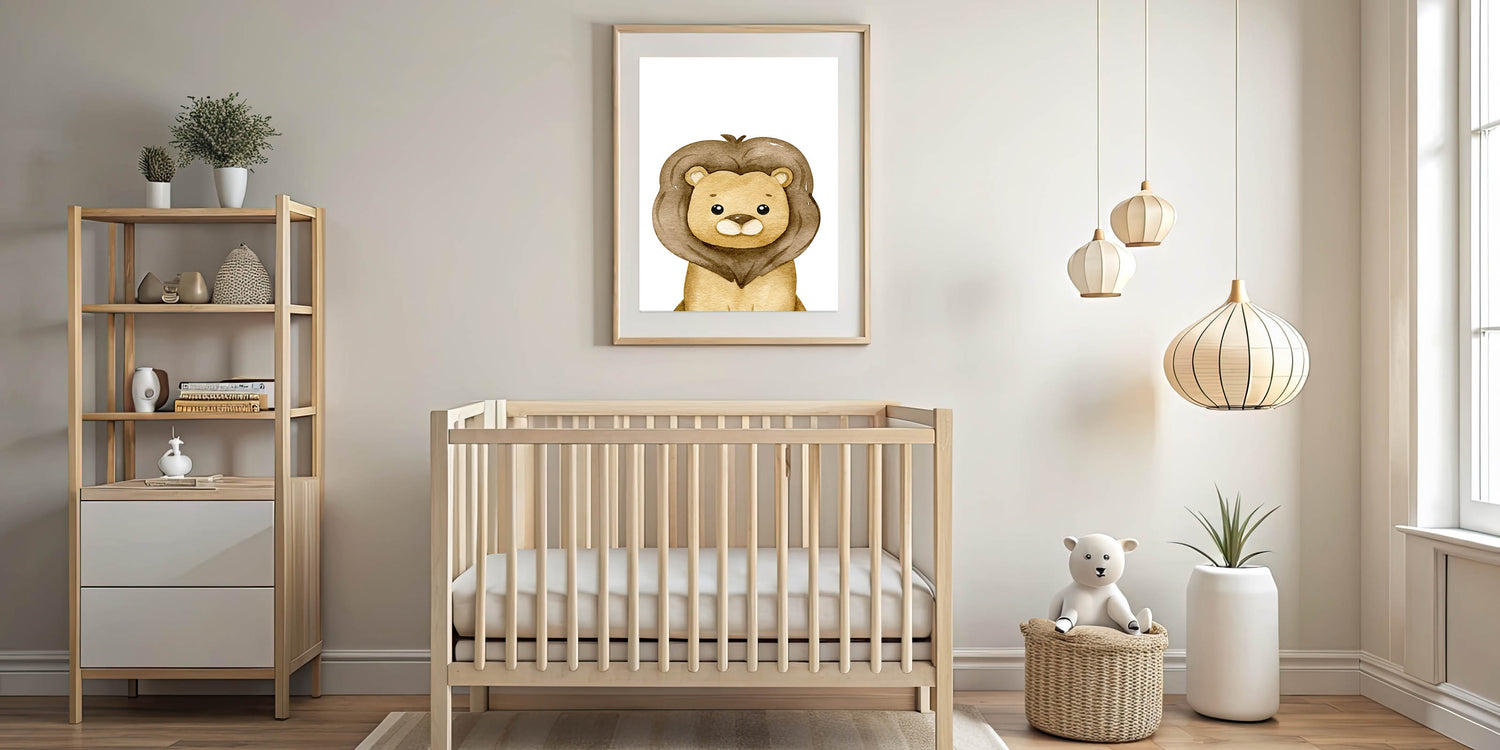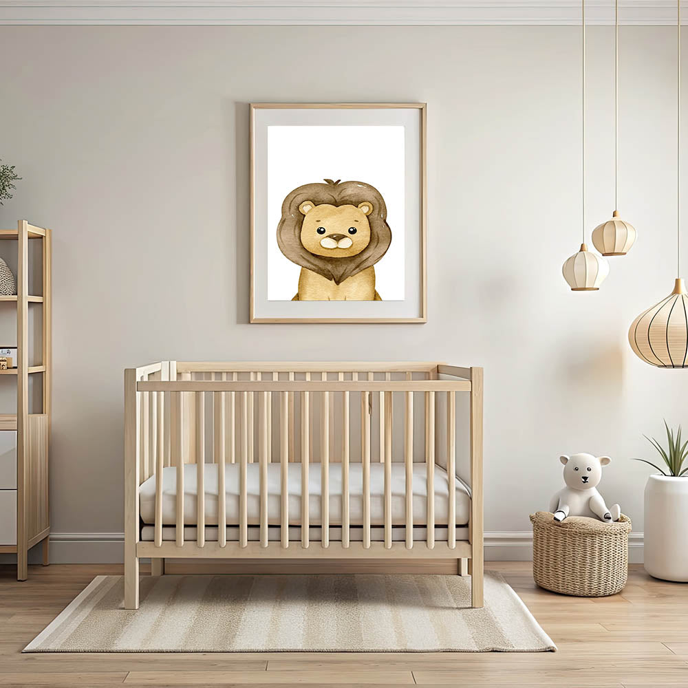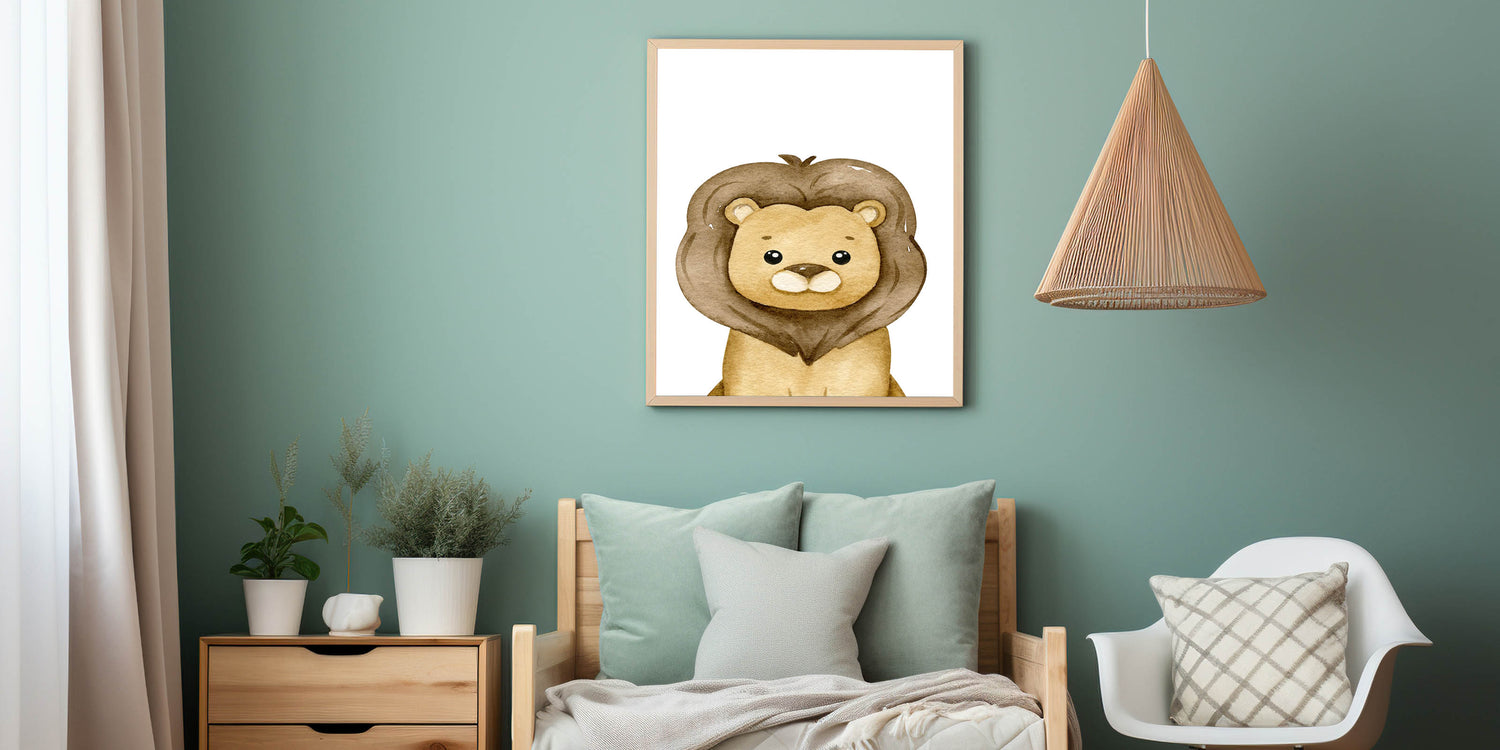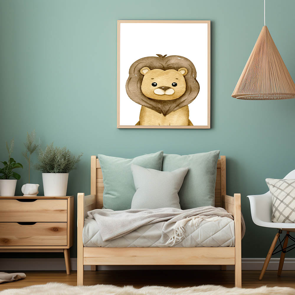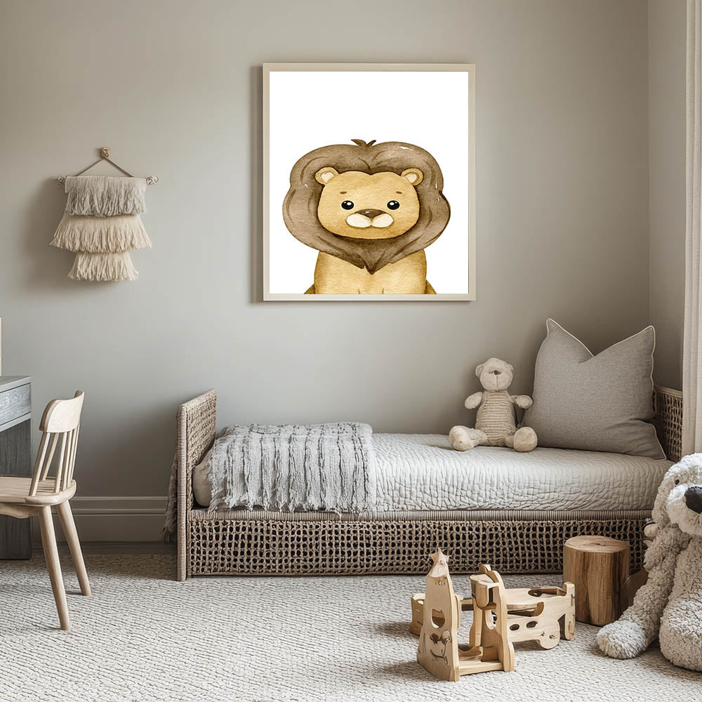 Framed Canvas Art for Children – Cute Watercolor Lion Print