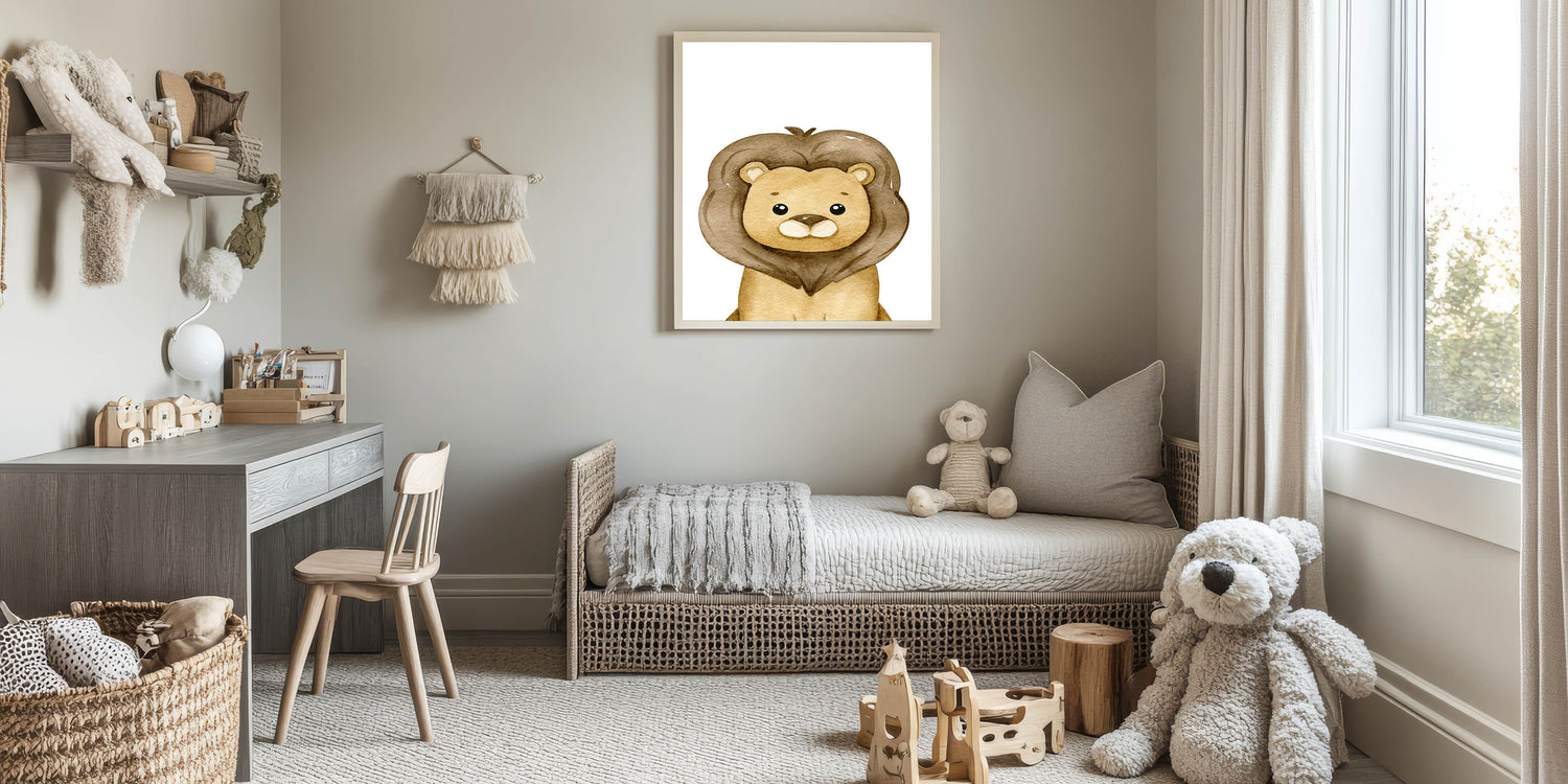 • Colorful Art for Kids' Spaces with warm beige and brown hues, ideal for neutral décor.