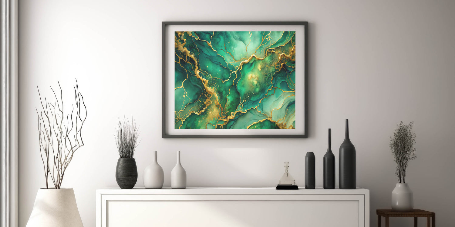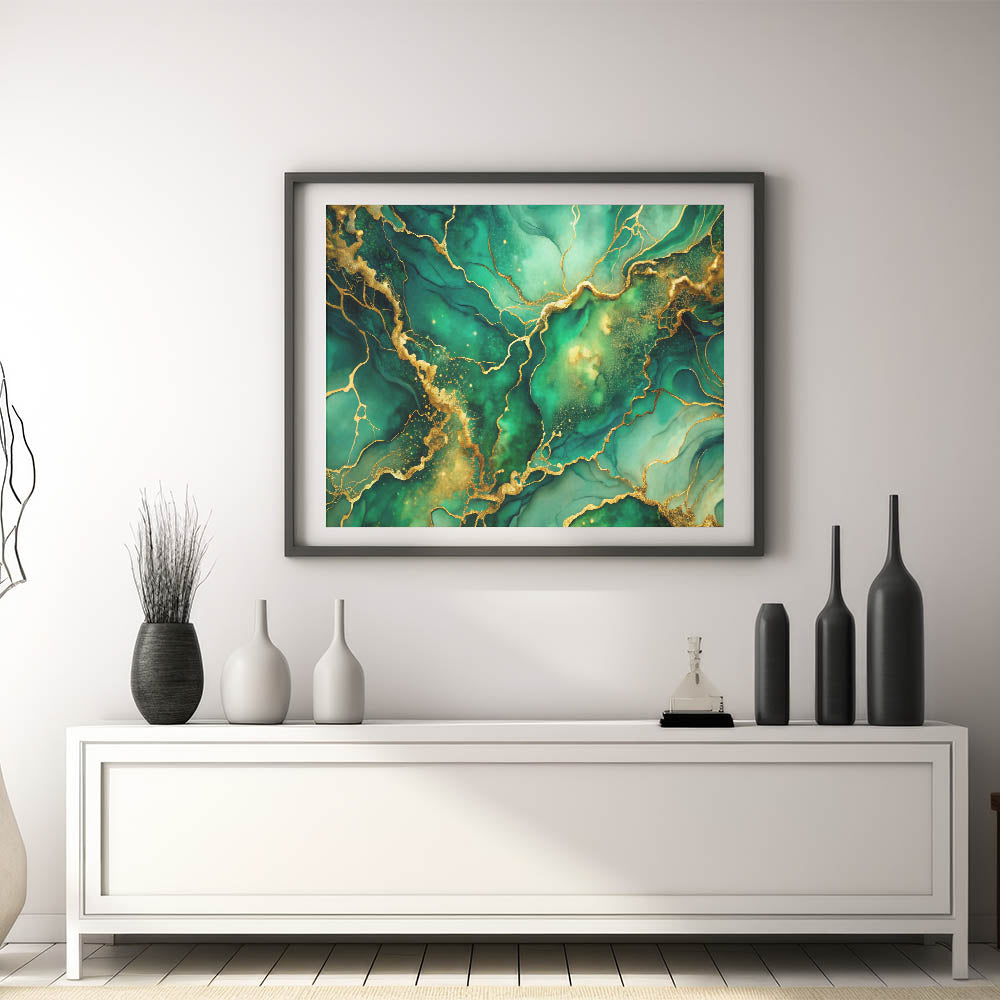 Luxury Green & Gold Abstract Painting – Modern Wall Art Print