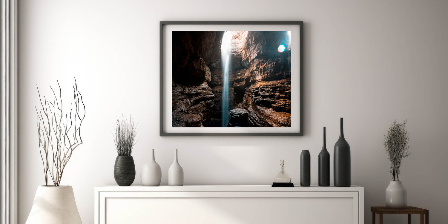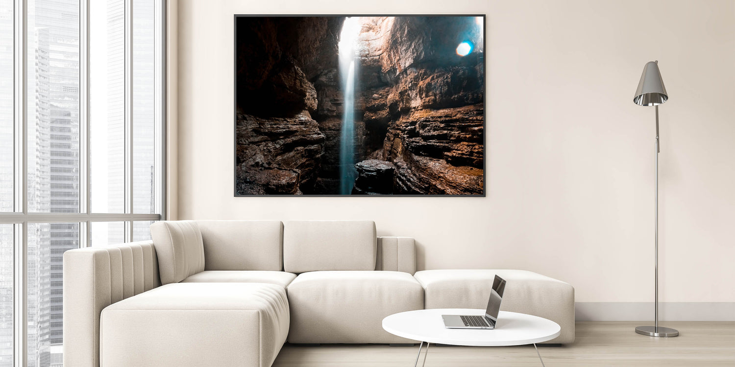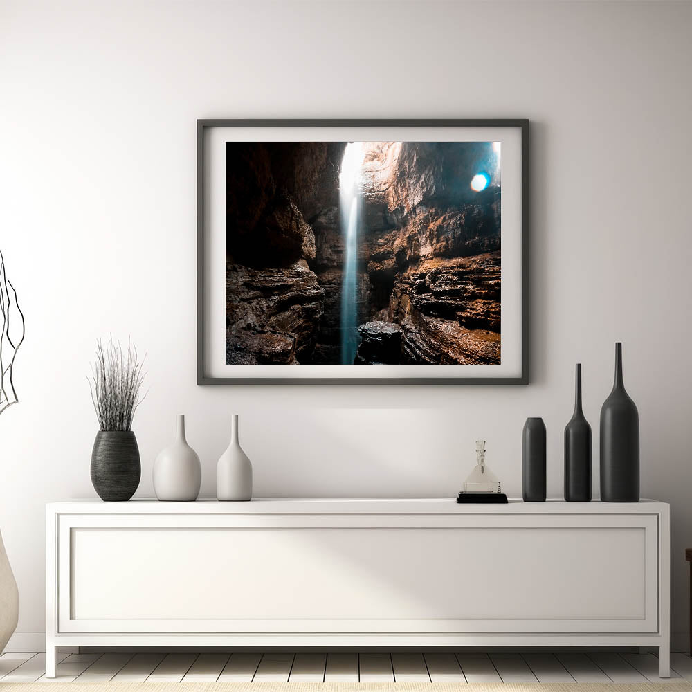 • Premium Quality: This Alabama landscape print is produced using high-definition photography, ensuring that every detail of the cave’s rocky textures and the waterfall’s gentle flow is brought to life.