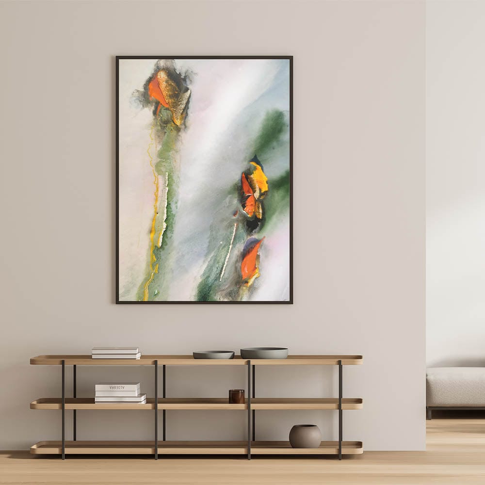Infuse your space with the organic flow of this moody modern wall art, a stunning blend of deep green, soft gray, and bold orange accents. The fluid brushstrokes and layered textures create a sense of movement, making this abstract wall art a compelling focal point. Whether placed in a living room, office, or gallery-style setting, this piece enhances any modern interior with artistic depth.