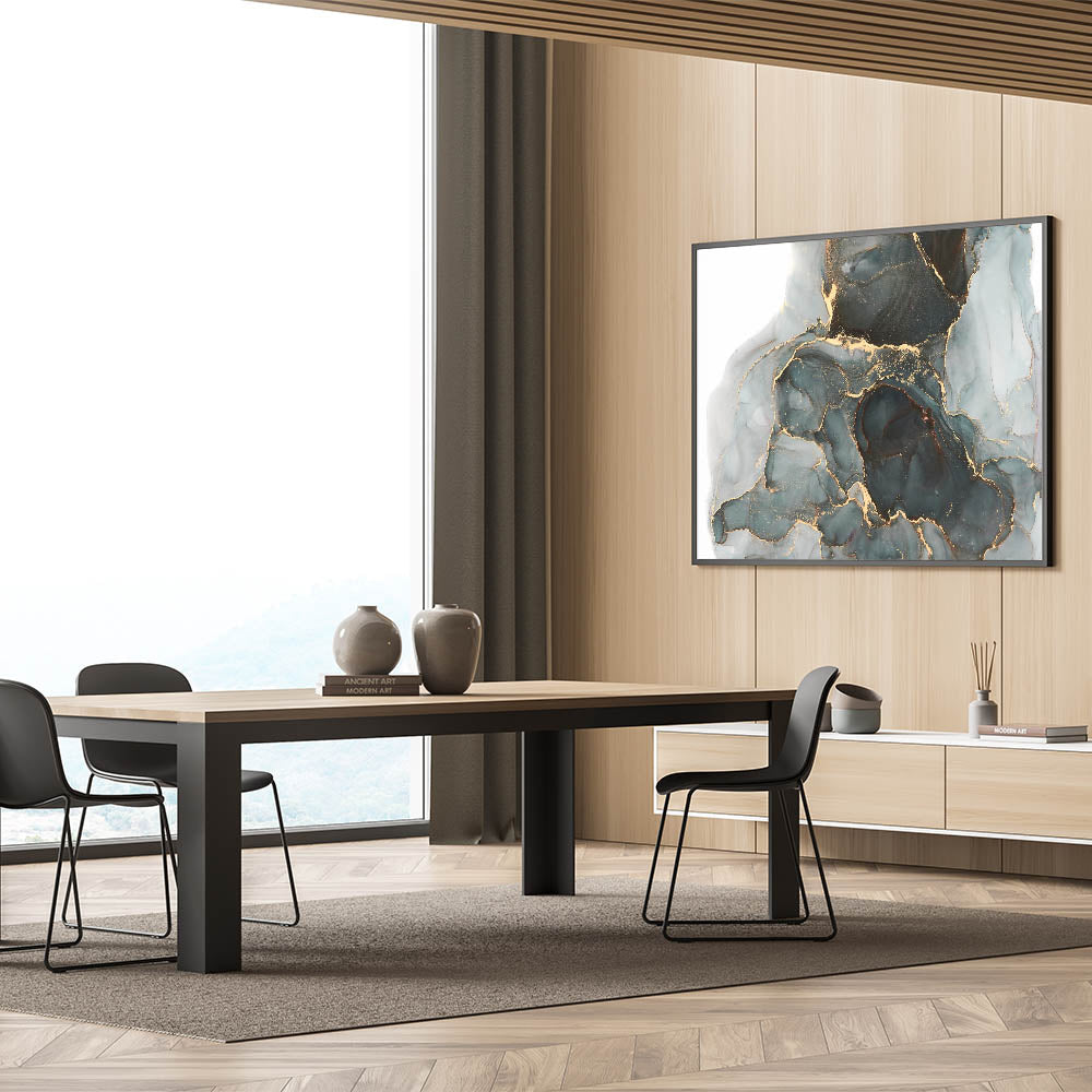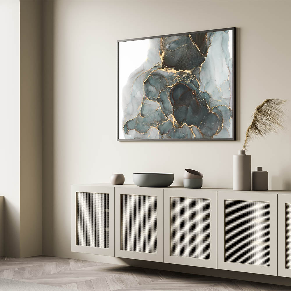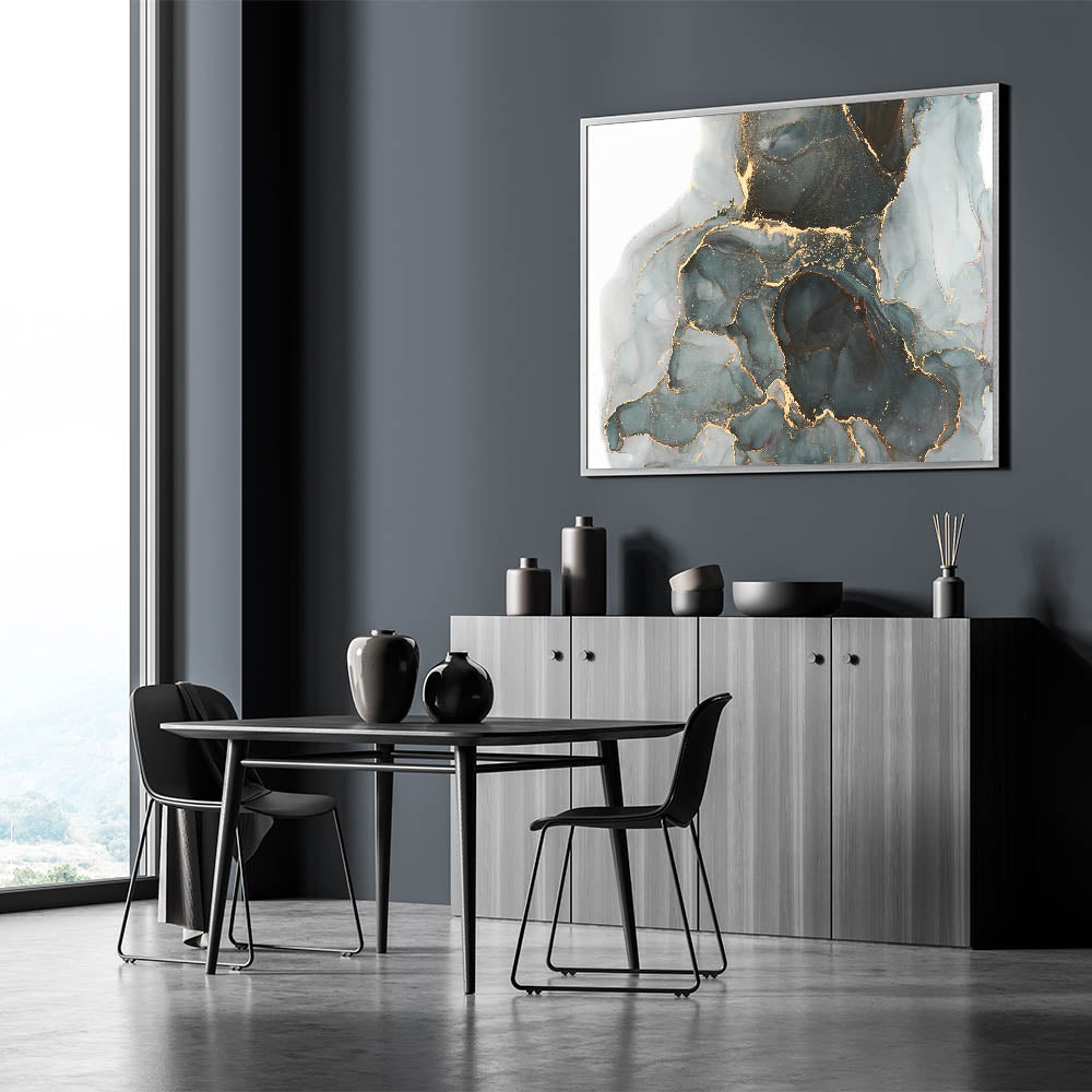 Elevate your interiors with premium abstract canvas prints, featuring an exquisite mix of deep forest green, black, and shimmering gold. This high-quality abstract art piece offers a luxurious and contemporary aesthetic, perfect for modern, elegant, and sophisticated spaces. The fluid gold veining against the moody green and black background creates a captivating visual statement, ideal for living rooms, offices, and upscale interiors.